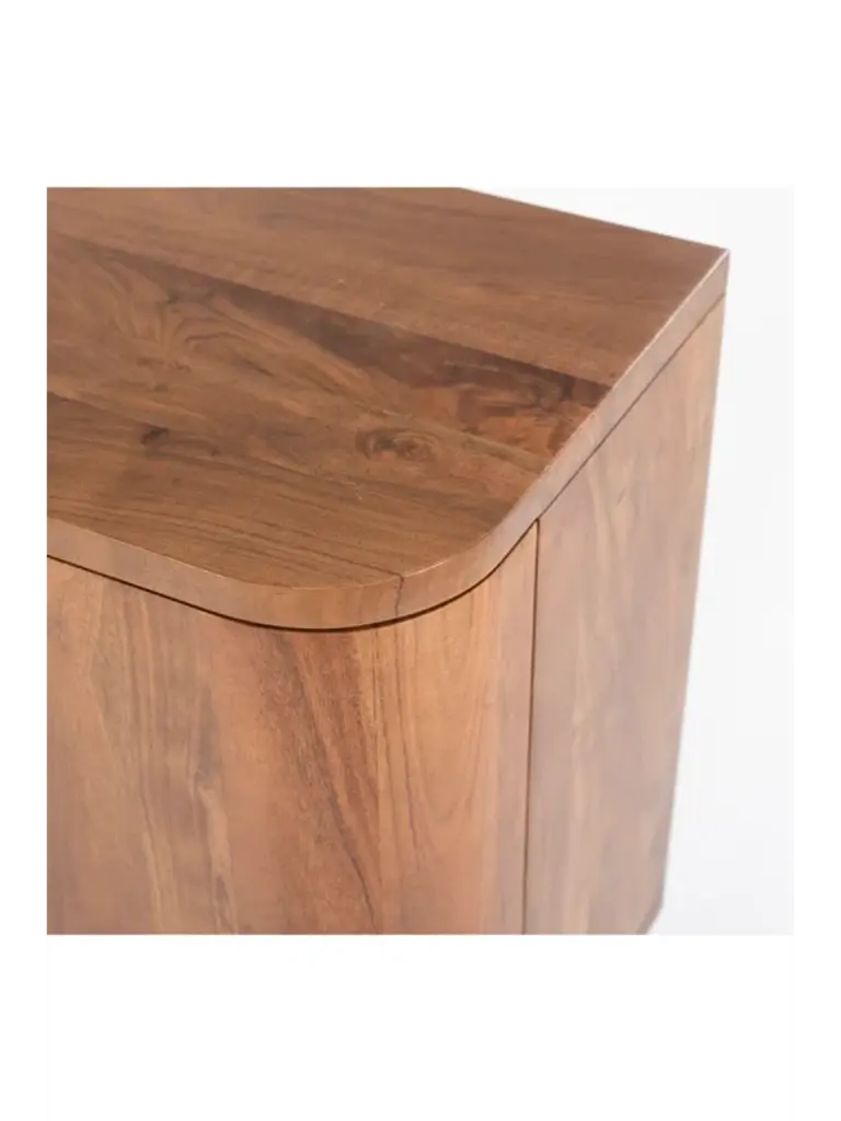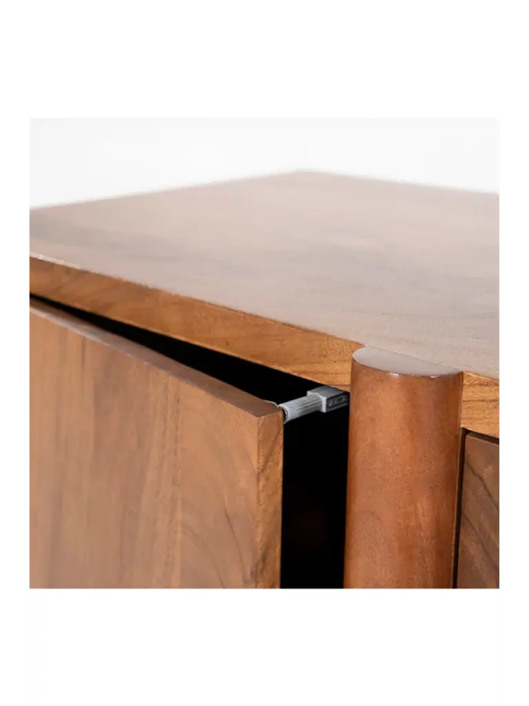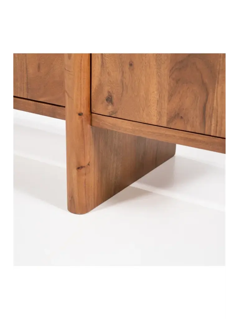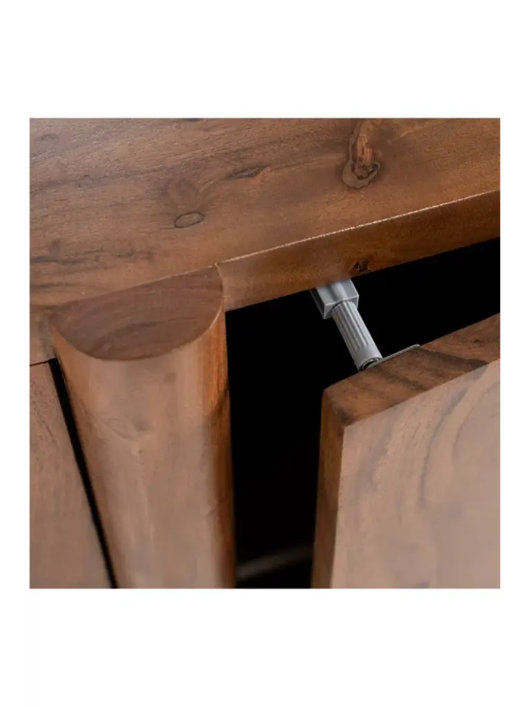Seasoned brown acacia forms curved legs and the cabinets of this sideboard. Generous space for all dining storage needs.