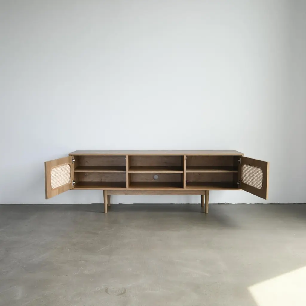 Jupia Medium Sideboard by PastformDimensions: D 40 x W 170 x H 62 cm.Materials: Stained and varnished wood.Available in different wood color finishes: Whiskey, Rum, BPA, Nobel, Brandy, Schwarz, and Natura. Prices may vary. Available in three different widths: 150/170/190 cm. Please contact us.Rooted in a good traditionThe Pastform Furniture studio dates back to the 1990s. Having in mind the idea of a traditional family company, Dawid Gełeta established a carpenter’s shop in 1997. The company specializes in the manual production of utility furniture. Times have changed and with them, fashion has changed. In 2016 we decided to change the direction, following the growing demand for vintage furniture.My name is Mateusz Gełeta, I am the son of the carpenter who founded the company. From an early age, I have watched my dad’s work. He put his whole heart into creating furniture, polishing every detail with his strong hands and making sure that nothing escaped our attention before sending the product to the customer. He made sure that every piece of furniture was perfect and refined. We remain true to these principles.Following the blow, I decided to create a harmonious combination of modern quality with the classic style of the 1960s. This is why I designed and created a unique collection of wonderful furniture, which, in addition to its well-thought-out functionality, also creates a perfect design and composes original arrangements.The golden age of interior designIn the 1960s interiors used to take on a very characteristic touch. All over the world, this style was called a mid-century modern, locally it was simply – retro furniture. Simple, elegant minimalistic form, without unnecessary decorations and splendor. Decorating with the idea of an uncomplicated composition, it allows for an undisturbed selection of the arrangement accessories and emphasizes a high level of functional comfort. One might say – a perfect piece of furniture. Comfortable, hiding surprisingly many items despite quite neat dimensions, made of noble species of wood and created by hand, with a focus on carefully refined details. No wonder its popularity is growing so much.Unique, refined, with a soulEach piece of the Pastform collection represents a unique style. Thoughtful concept of usable comfort, refined details, carefully selected raw materials, and proven accessories. We use only high-quality boards which we veneer with oak, American walnut, and other durable wood species. They are carefully oiled with the best, hard, ecological oil waxes, giving the furniture its final shape. This technology brings out the natural beauty of wood, exposes the grain and unique design of each piece, highlights the beautiful color, and allows to achieve timeless durability.This is how unique, thoughtful, and refined furniture with a soul is created.Thinking about futureWe are trying to positively create the world of which we are a part, contributing to a better tomorrow. We cooperate with local suppliers, support small companies and production plants, care for ecology, and respect the needs of the land. We always strive to establish long-lasting, based-on-trust relationships with customers and contractors.Flexible, with openness and heart on handWe sincerely like what we do. Playing with the shape, structure, and texture of wood is fascinating. Creating new arrangements and coming up with innovations that will meet your expectations. We are proud of our products and we are happy to present you with our collection of refined furniture.All our vintage furniture can be made on request – fulfilling the boldest dreams and fantasies. See our offer and if you want to know more, feel free to contact us. We are waiting for you!