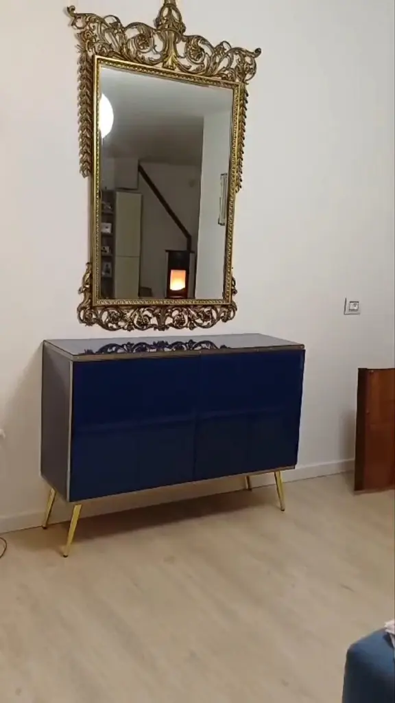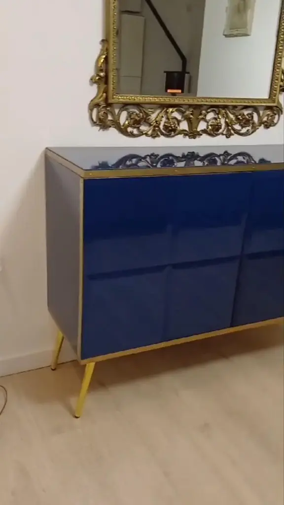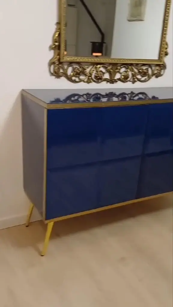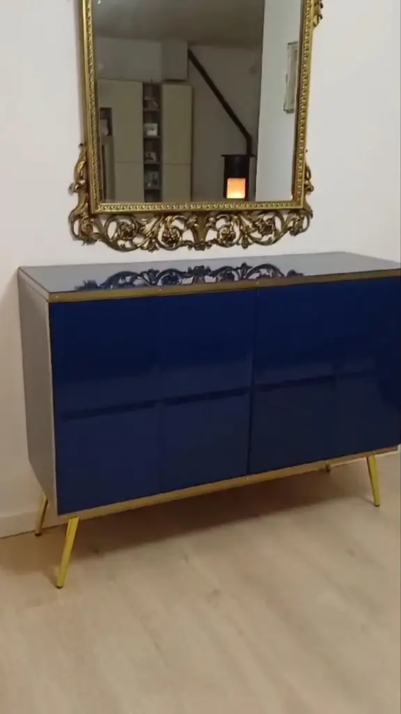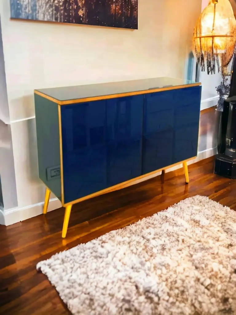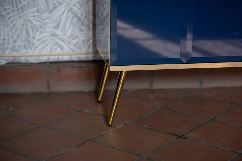 Our two-door sideboard, designed and manufactured by JustFurnituress, is a masterpiece of Italian craftsmanship that combines elegance and functionality in a timeless design. JustFurnituress, known for its dedication to quality and design, has created a piece that not only enriches the aesthetics of the interior, but also offers unparalleled practicality.The sideboard is distinguished by its sapphire blue bevelled glass doors, which lend a touch of sophistication and mystery. This glass is not just a decorative element; its transparency and shades of blue capture light and create fascinating lighting effects, making the furniture a real focal point in any environment. The combination of elegance and modernity is what makes this piece so special.Made of birch wood, the sideboard is an example of high quality craftsmanship. JustFurnituress is committed to using only high-quality materials, carefully selected to ensure durability and beauty. The birch wood structure not only offers robustness, but also adds natural warmth to the overall design.The soft brass folds of the door frames are not just aesthetic; brass is a durable and durable material that imparts a touch of luxury. Each profile is fixed with brass screws, ensuring solidity and an impeccable finish, the result of the craftsmanship of the designers of Soft, thrust inner hinges are another distinctive feature of this belief. These mechanisms ensure a smooth and silent opening and closing, making the everyday experience very pleasant. Careful design allows easy access to stored objects, making the furniture not only beautiful, but also extremely practical.This cupboard is perfect for enriching any environment, whether in a domestic or commercial setting. Its ability to adapt to various styles of furniture, from modern to classic, makes it a versatile and refined piece. It can be used in living rooms, dining rooms, offices or commercial spaces, where it can act as an elegant focal point.Opting for the JustFurnituress sideboard means investing in a high-quality product designed to last. It's not just a piece of furniture, but a piece that tells a story of elegance and craftsmanship. The beauty and functionality of this piece of furniture make it a valuable addition to any space, capable of arousing admiration and appreciation.In summary, the two-door sideboard of JustFurnituress is much more than just a piece of furniture. It is an example of design and craftsmanship that celebrates the beauty of materials and Italian craftsmanship. With its bevelled sapphire blue glass, elegant brass and sturdy birch wood structure, this sideboard is destined to become a central element in any environment, enriching it with its distinctive and sophisticated presence. Choose to elevate your furniture with a piece that combines aesthetics and functionality, made with passion and dedication by JustFurnituress.