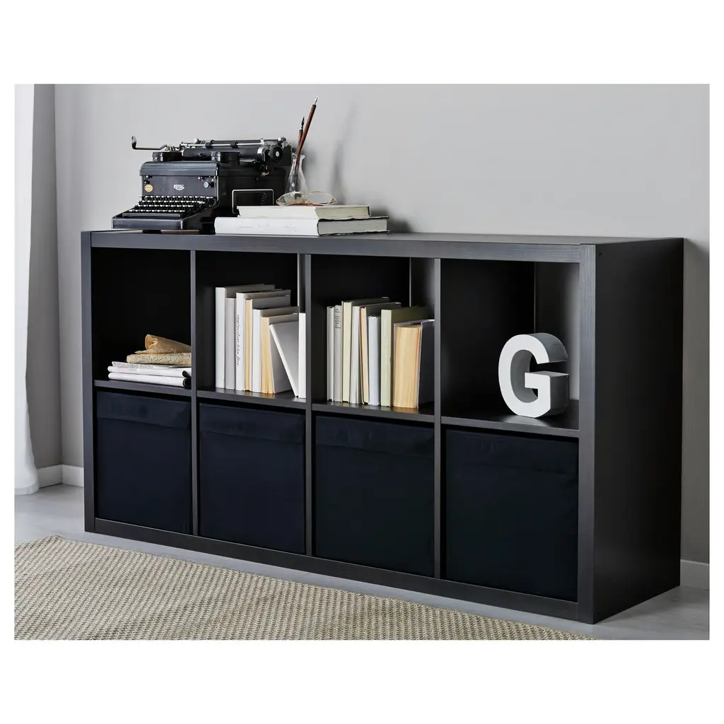 KALLAX Shelf unit - black-brown 30 1/8x57 5/8 ". The simple design with clean lines makes KALLAX flexible and easy to use at home. Choose whether to place it standing and use it as a shelving unit or lying and use it as a sideboard. KALLAX underframe sold separately.