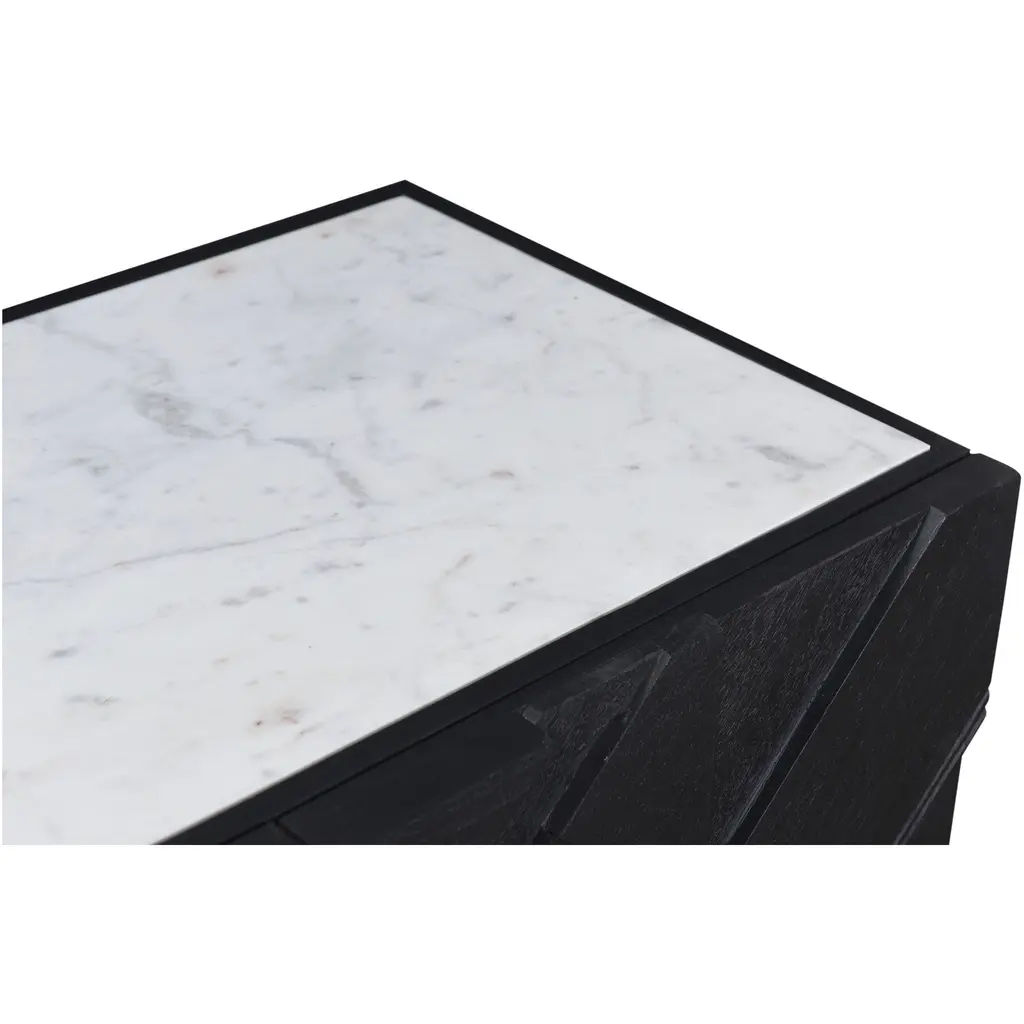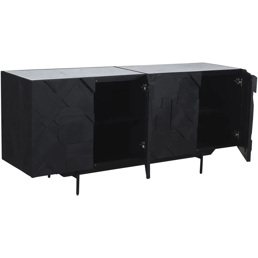 Fitted with barn doors, this sideboard buffet is large and spacious. The Kattan Sideboard is made with sustainable mango wood, which is both strong and durable. The white marble top finishes off the look, making it a head turner for any contemporary modern décor.