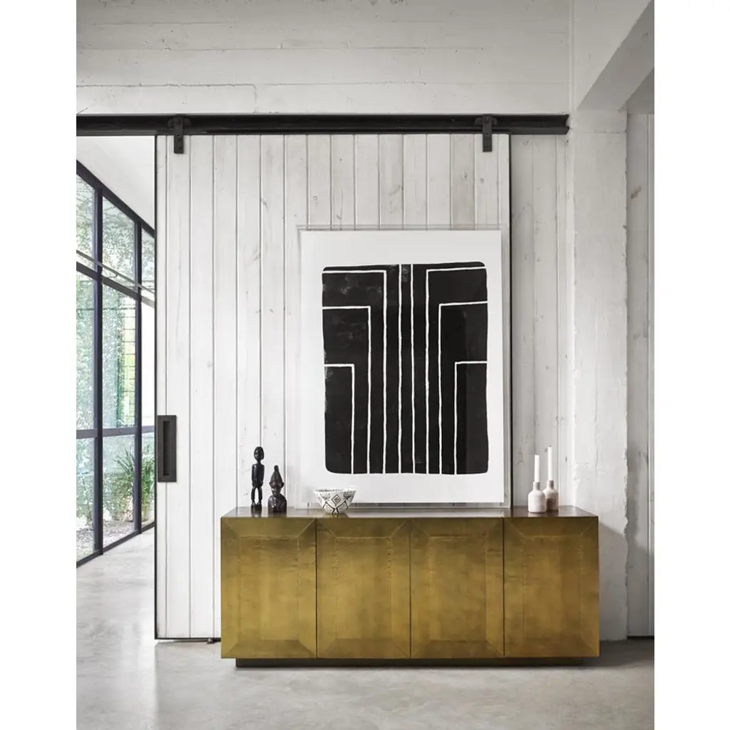 Ketzia Hollywood Regency Aged Brass Mango Veneer Sideboard