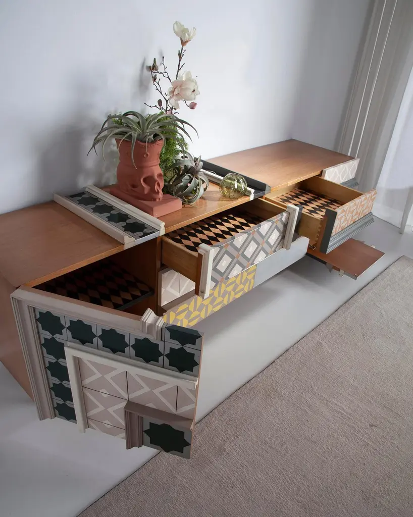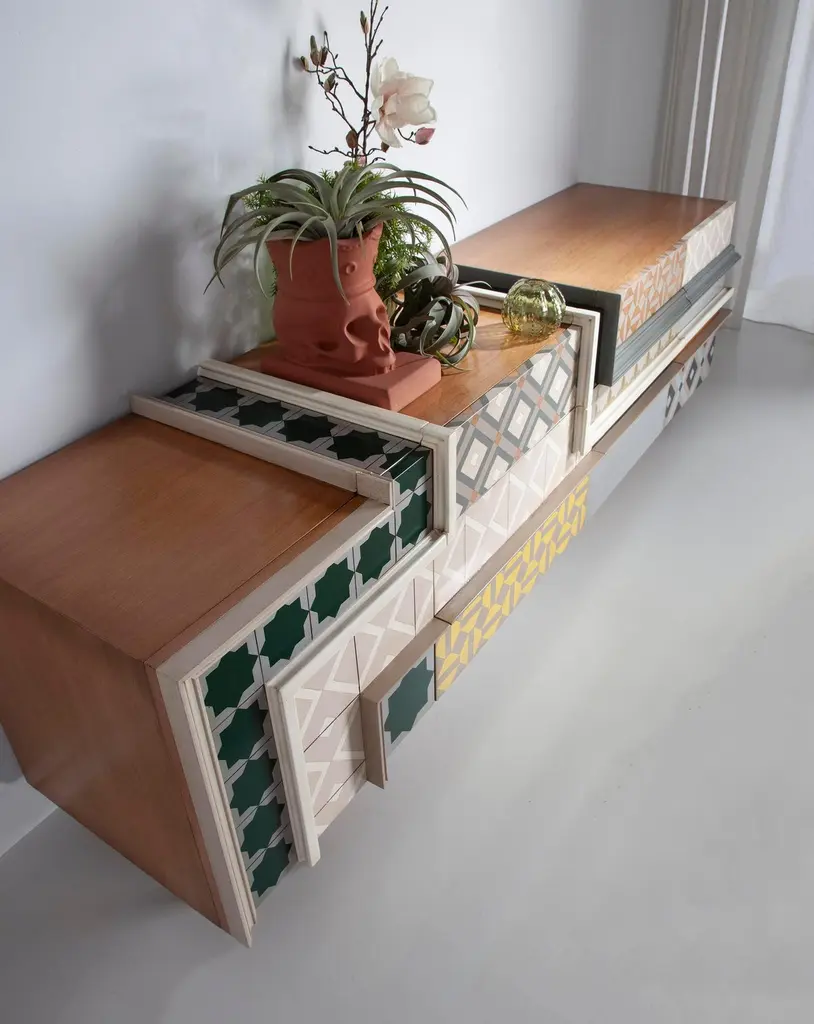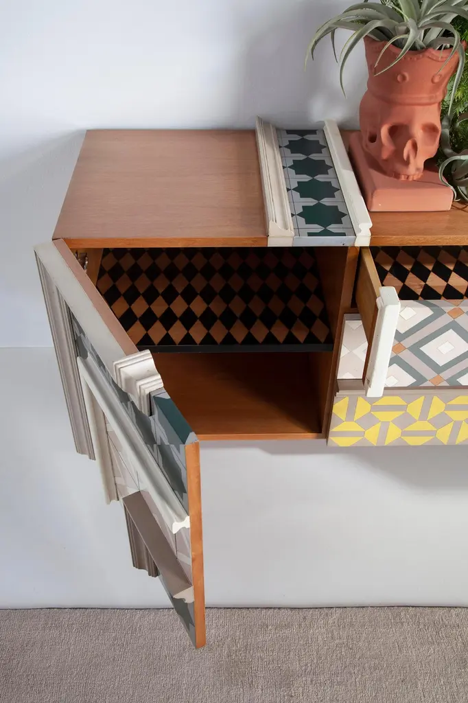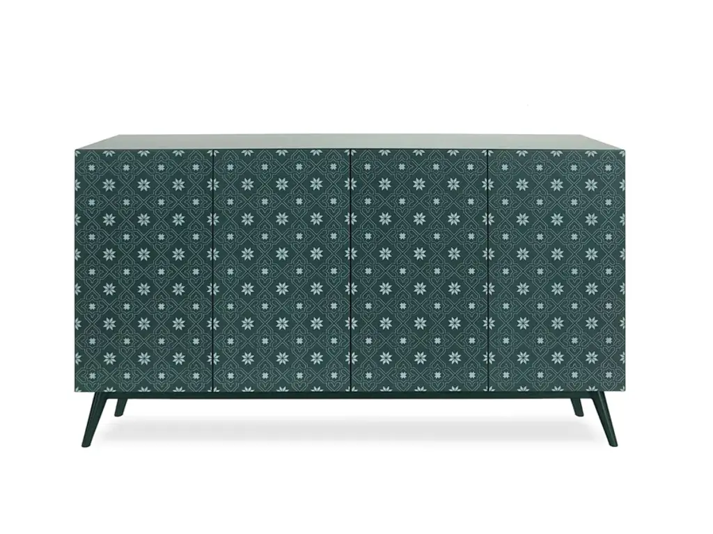 Khalo Sideboard by Lola GlamourDimensions: D 45 x W 200 x H 60 cmMaterials: Wood.This television unit or low sideboard is a true explosion of creativity and style that will transform your living room into a dream space. In addition to being a functional solution for your entertainment equipment, it is a work of art that will take center stage in any room.It consists of four doors that open in different directions and two drawers, hidden between intricate texture patterns and wooden slats that are masterfully repeated inside the drawers and shelves. Each of them has been hand-decorated, turning them into small works of art in their own right.Customizable in size and finish.We are Félix and Désirée Ramos, brothers and product designers of our brand, Lola Glamour.We are interested in the singular, the different, the beauty, and the balance of color and materials. We have the ability to observe and the ability to translate any beautiful object into a piece of furniture.We are proud of having created our own style, a way of understanding design, which allows us to tell stories and connect with the souls of people and spaces.Lola Glamor is a Spanish company from Soria, which has designed and manufactured unique furniture in noble woods, with artisanal construction and extraordinary finishes since 1995. Artistic furniture that is customized in size and finish according to the client's needs.We offer original furnishing solutions for professionals and individuals from any country in the world, mixing materials, volumes, motifs, and colors that achieve their own style.We are, above all, the sum of a team of people who contribute their dedication and commitment to a unique level of demand, detail, and quality.
