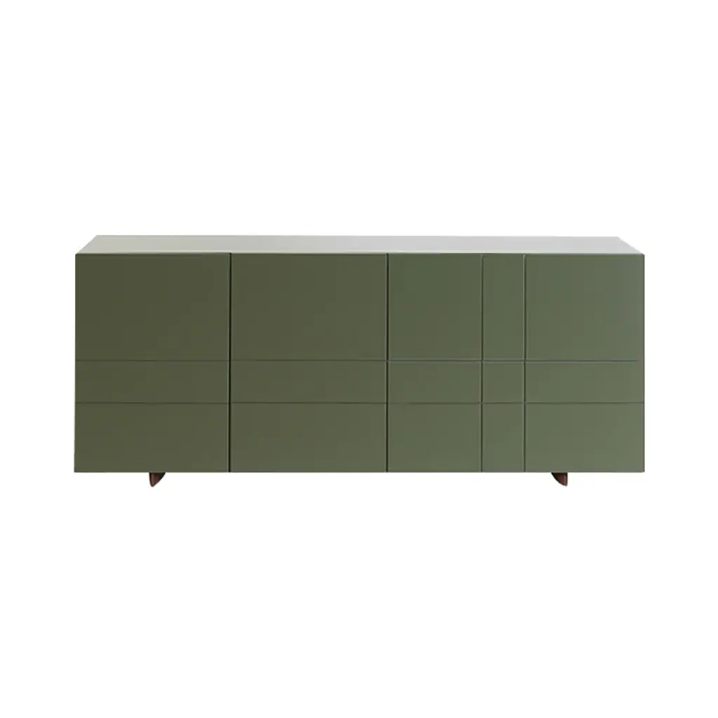 Suggested by tartan plaid, Swedish maker Asplund offers a strikingly geometric sideboard with a choice of versatile storage alternatives. Kilt 137 comes with either a removable shelf behind each of 3 doors or a 2-door version with an added pair of drawers situated at the right. Fashioned in lacquered MDF in a range of colors or several wood veneer options, architect-designers Claesson Koivisto Rune's cabinet has openings at the back for ventilation or cables and solid-oak runner legs.