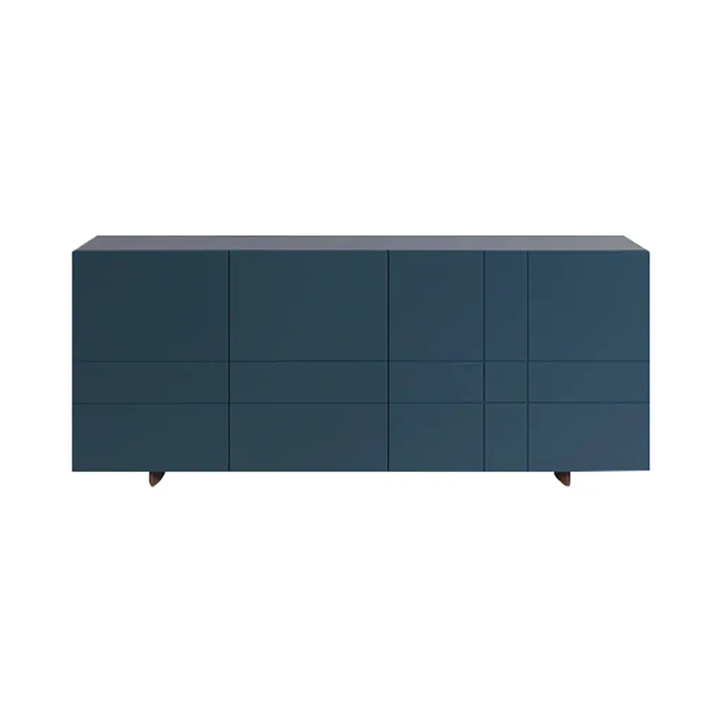 Suggested by tartan plaid, Swedish maker Asplund offers a strikingly geometric sideboard with a choice of versatile storage alternatives. Kilt 137 comes with either a removable shelf behind each of 3 doors or a 2-door version with an added pair of drawers situated at the right. Fashioned in lacquered MDF in a range of colors or several wood veneer options, architect-designers Claesson Koivisto Rune's cabinet has openings at the back for ventilation or cables and solid-oak runner legs.