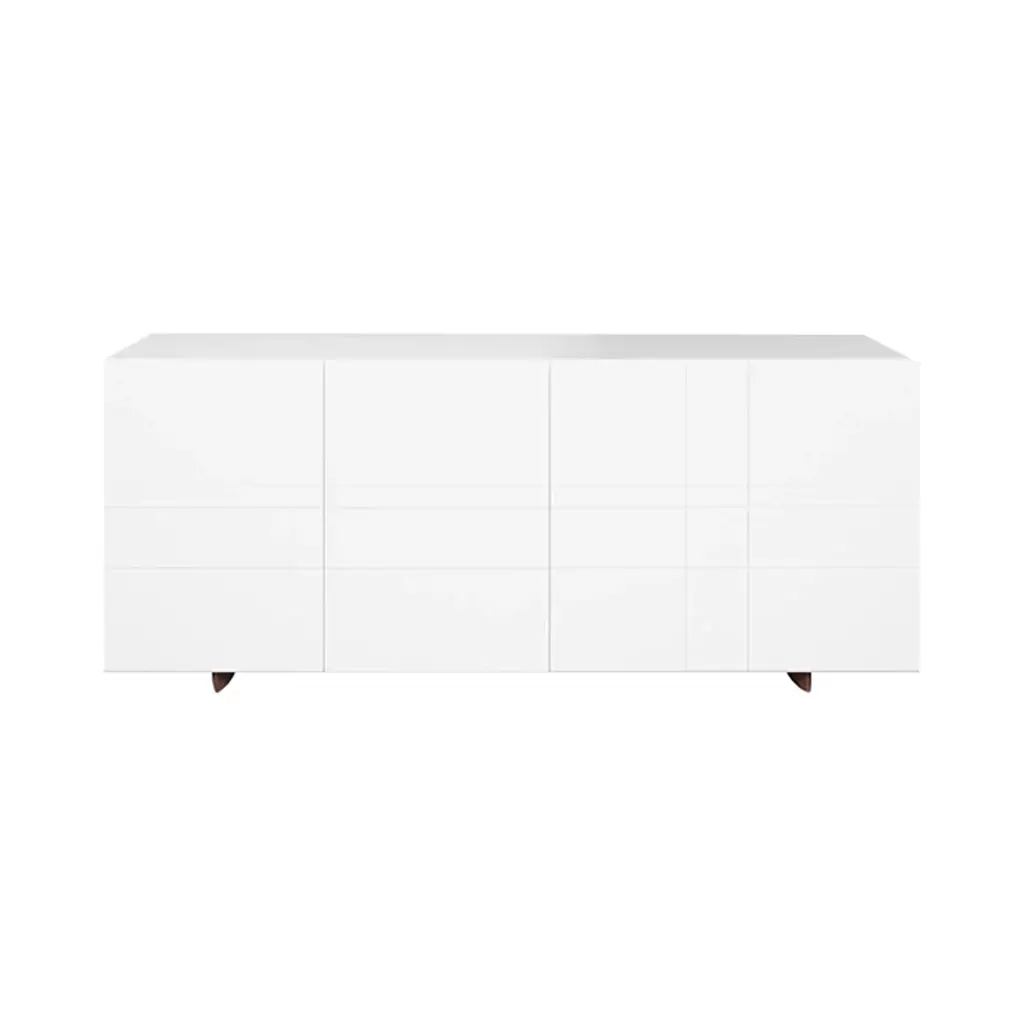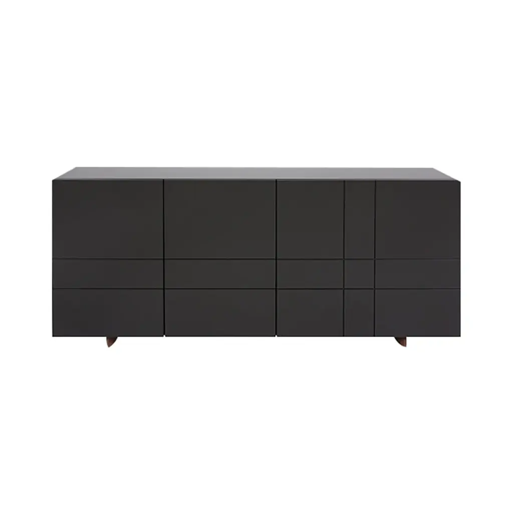 Suggested by tartan plaid, Swedish maker Asplund offers a strikingly geometric sideboard with a choice of versatile storage alternatives. Kilt 137 comes with either a removable shelf behind each of 3 doors or a 2-door version with an added pair of drawers situated at the right. Fashioned in lacquered MDF in a range of colors or several wood veneer options, architect-designers Claesson Koivisto Rune's cabinet has openings at the back for ventilation or cables and solid-oak runner legs.