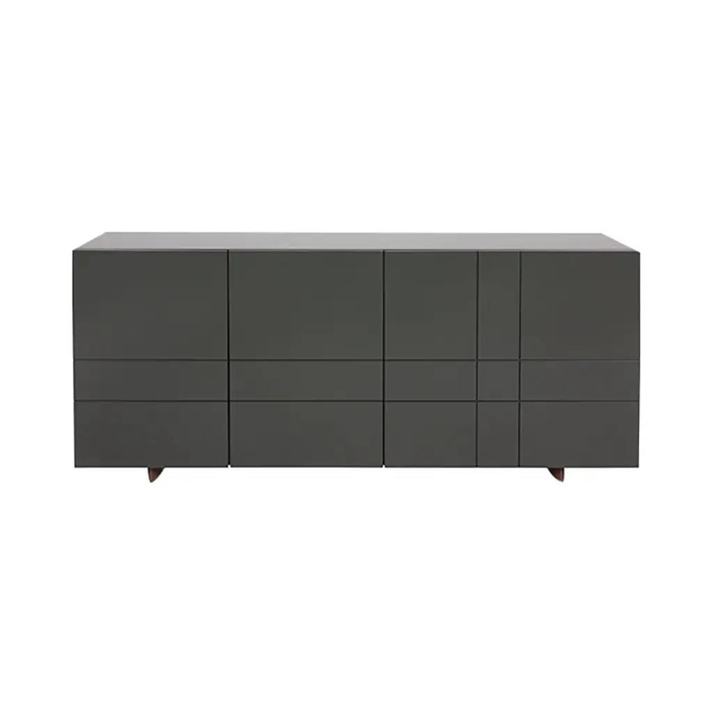 Suggested by tartan plaid, Swedish maker Asplund offers a strikingly geometric sideboard with a choice of versatile storage alternatives. Kilt 137 comes with either a removable shelf behind each of 3 doors or a 2-door version with an added pair of drawers situated at the right. Fashioned in lacquered MDF in a range of colors or several wood veneer options, architect-designers Claesson Koivisto Rune's cabinet has openings at the back for ventilation or cables and solid-oak runner legs.