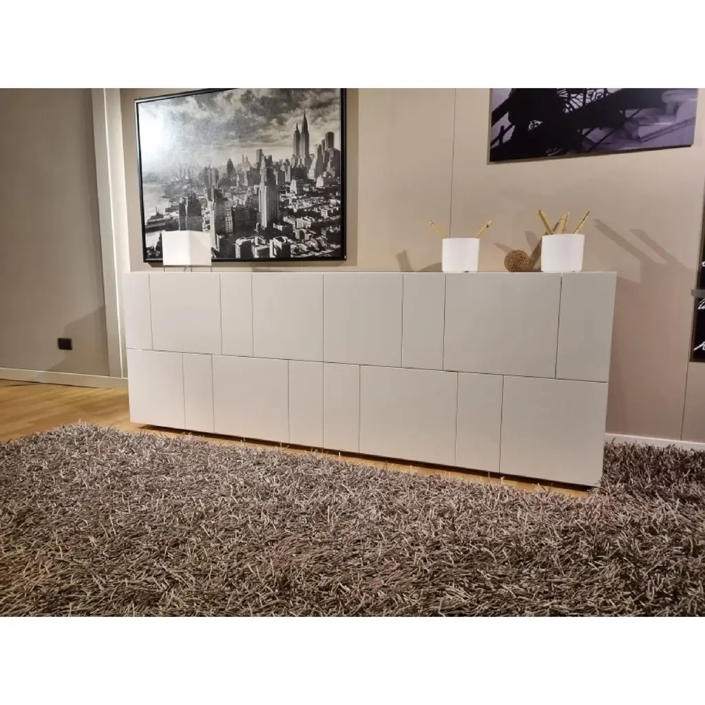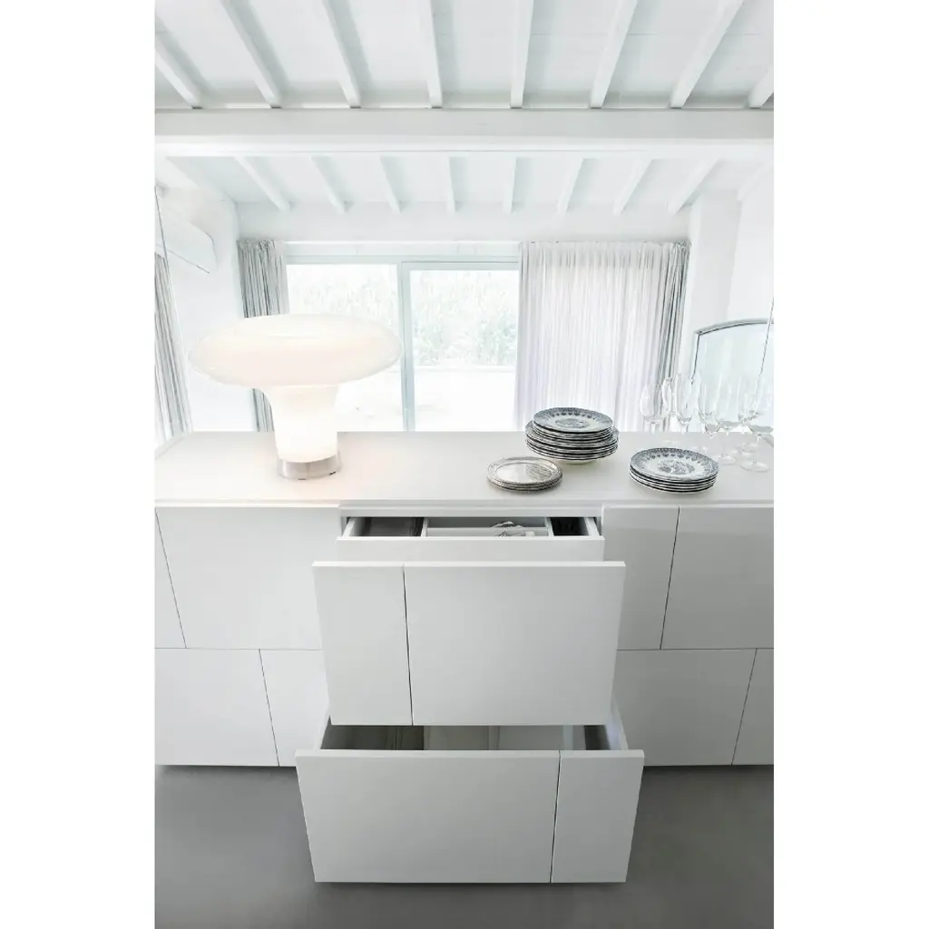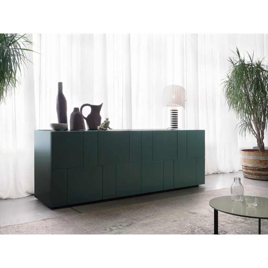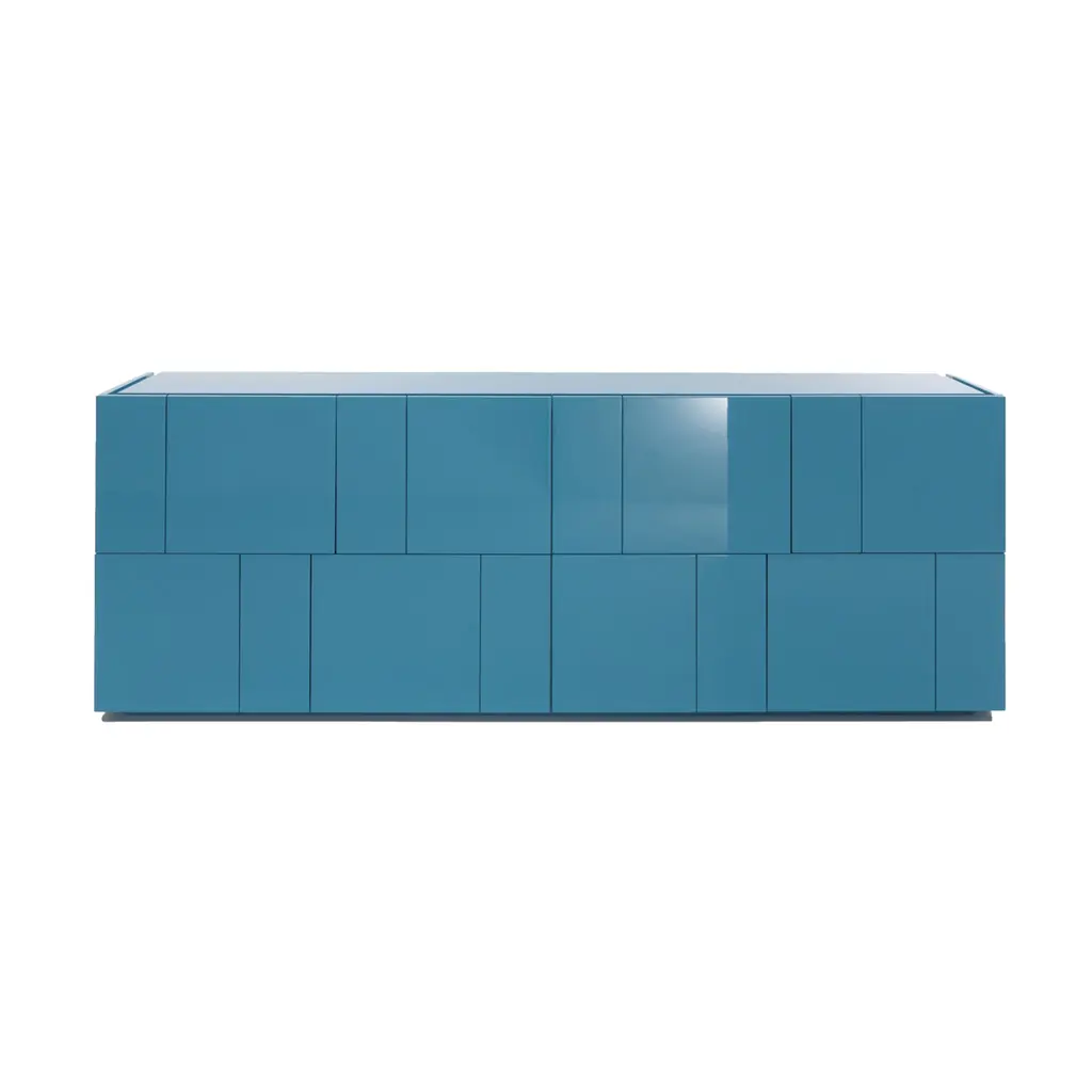 The Lacquered 4-Door Sideboard by Lema Ortelia features a “tiled" façade with a playful, graphic feel that brings dynamism to the surface, which is made up of square sections concealing hinged doors and drawers. It is an elegant yet minimalist piece, available in two sizes and with a matte or glossy lacquered finish. The external lacquering is matched inside, ensuring aesthetic continuity and showcasing the meticulous attention to detail that is so synonymous with Lema.