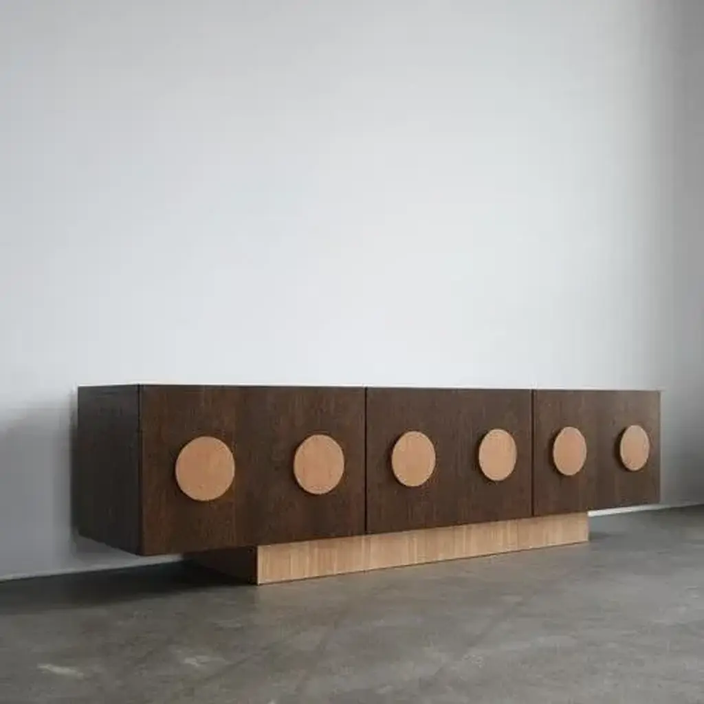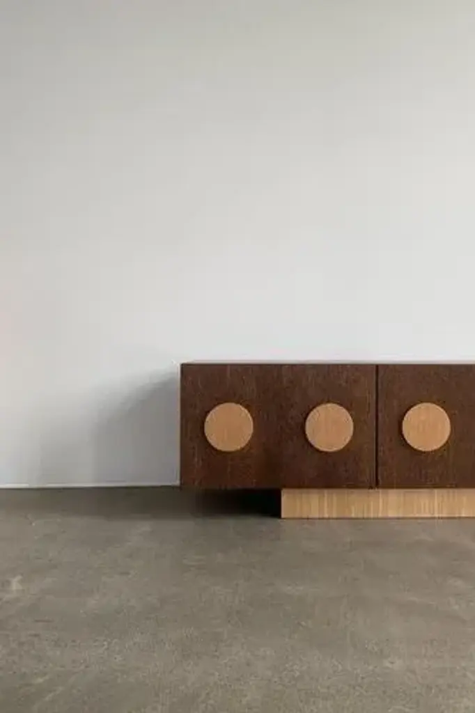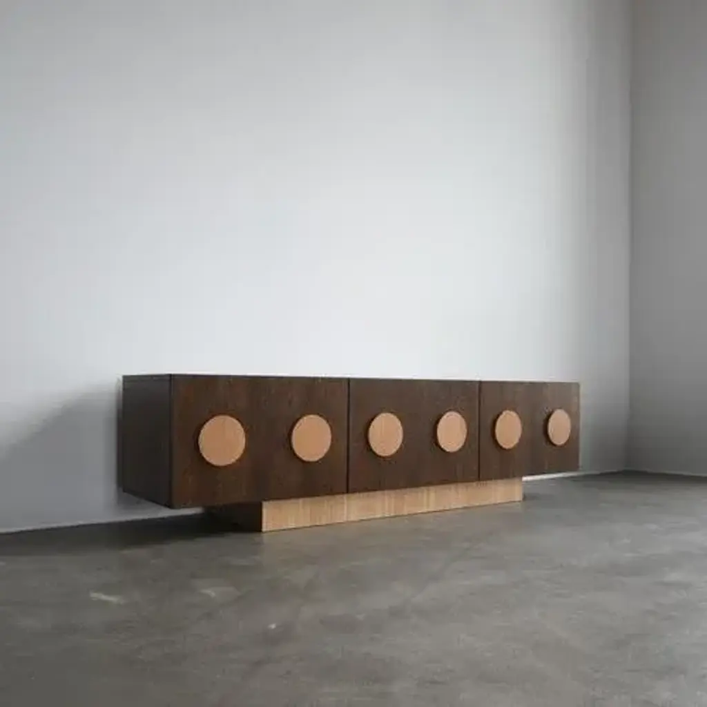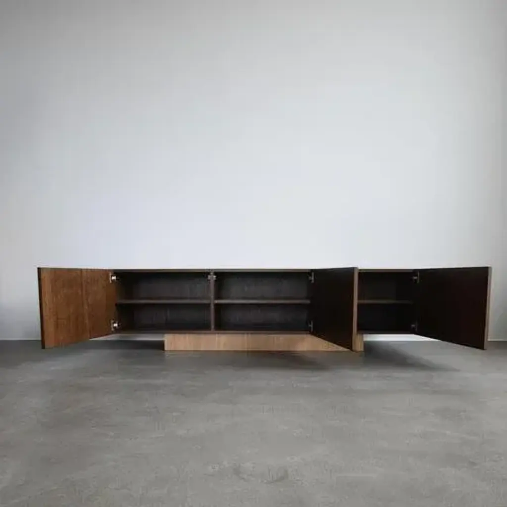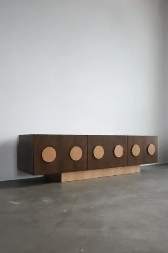Kolma Extra Large Lowboard by Pastform Dimensions: D 42,5 x W 200 x H 46 cm. Materials: Stained and varnished wood.