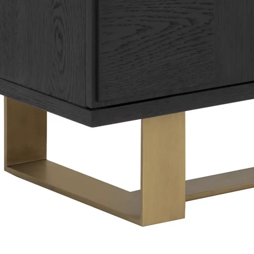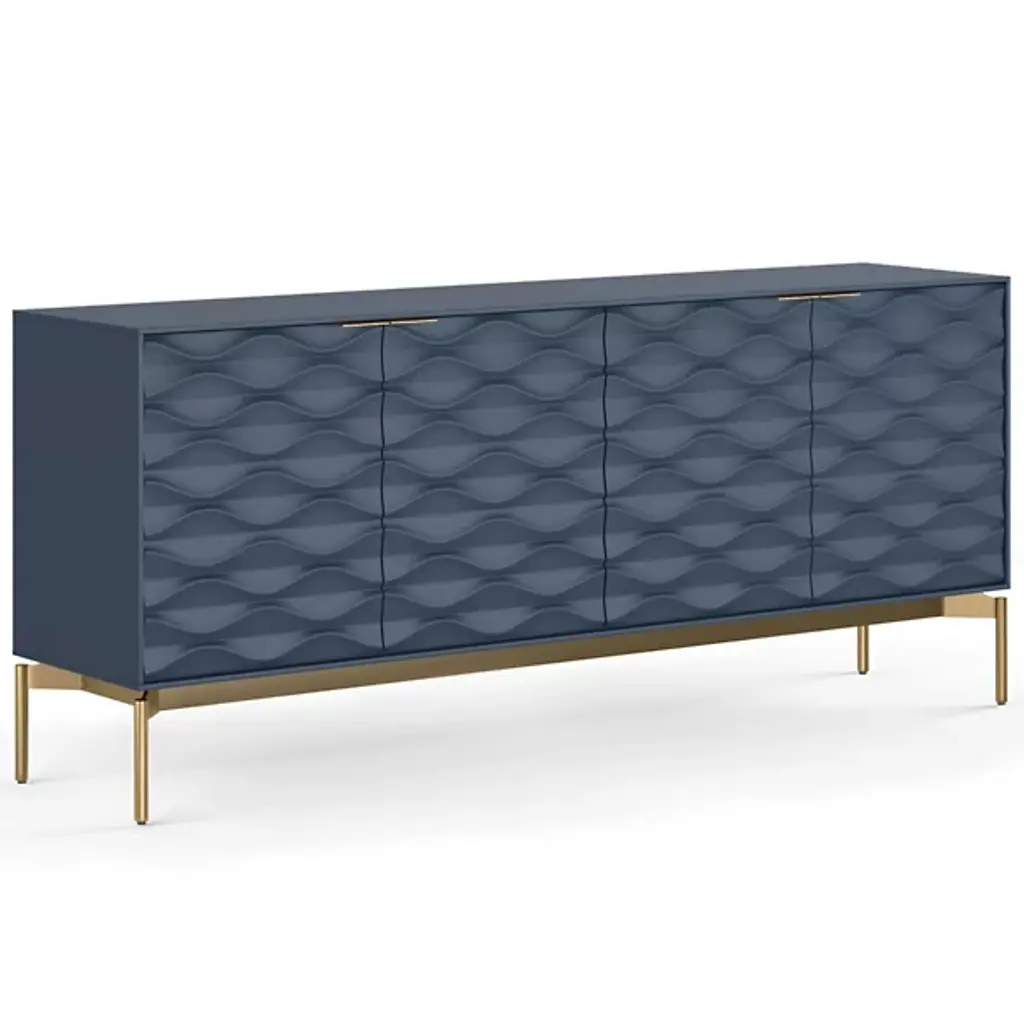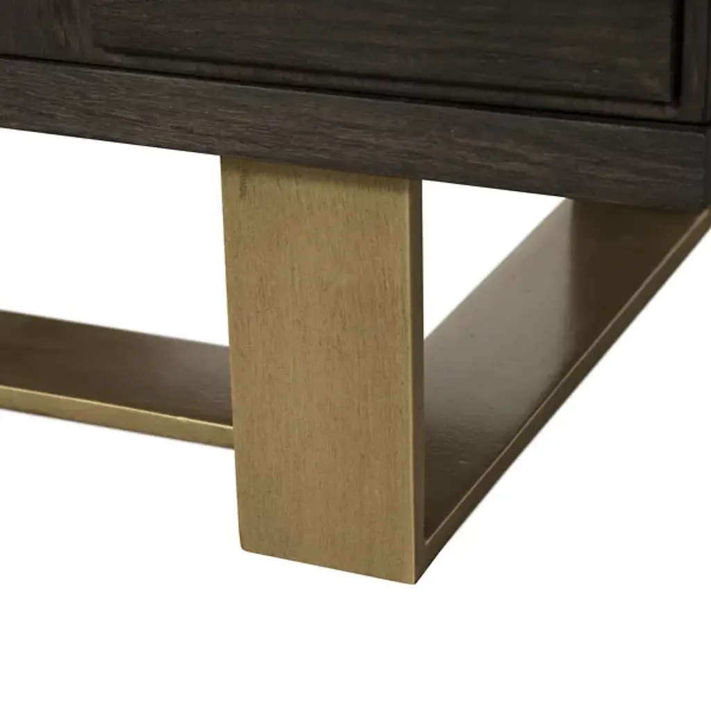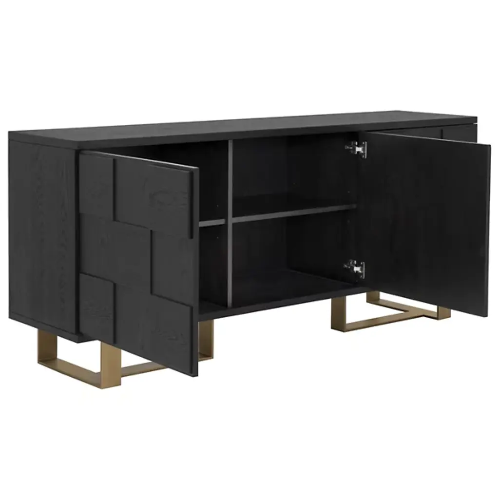 The Lars Sideboard from Sunpan brings bold design and natural warmth to any dining or living space. Made from smoked acacia wood, its three-dimensional checkered cabinet doors create a memorable visual texture, while the antique brass-finished iron frame adds an industrial edge. It features three spacious doors to the interior and ample storage with style. Natural variations in wood grain, knots, and texture make each piece unique, resulting in a versatile and inspired addition to rustic modern or contemporary interiors.