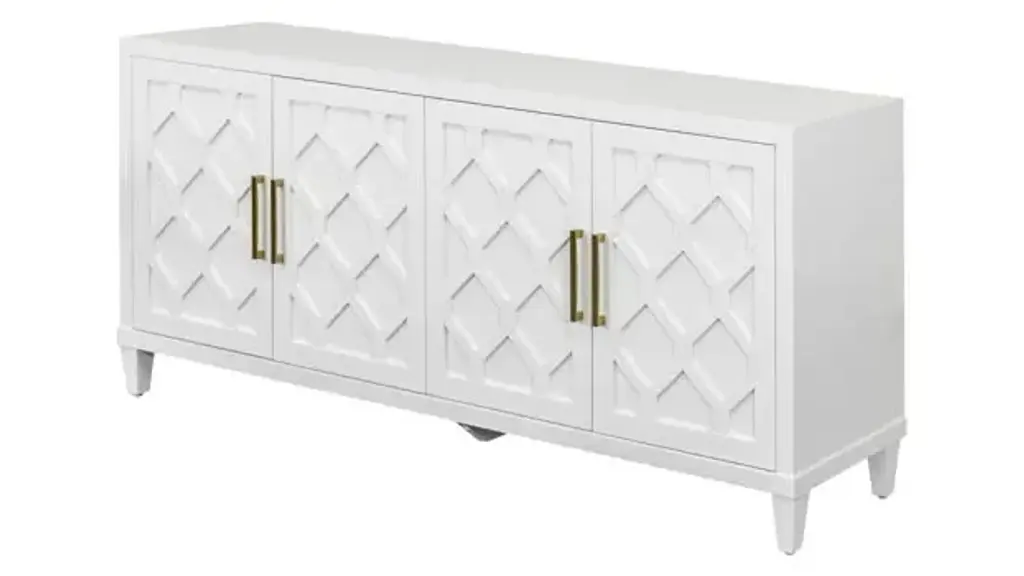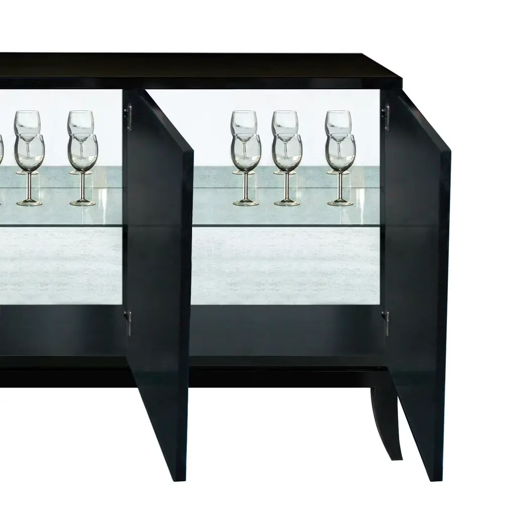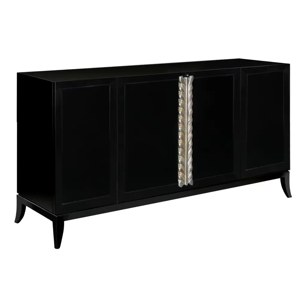This three-door sideboard is beautifully crafted by the finest Italian artisans. The addition of a geometric motif on the front and sides offers a subtly glamorous appeal. The cabinet is available in a matt black and white lacquered finish. Designer: Isabella Costantini. Please ask the Concierge for customization options.