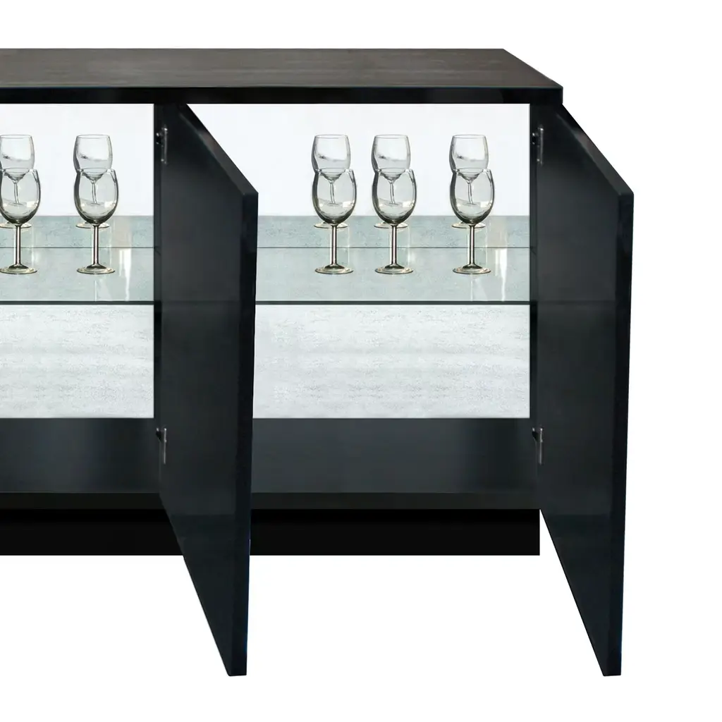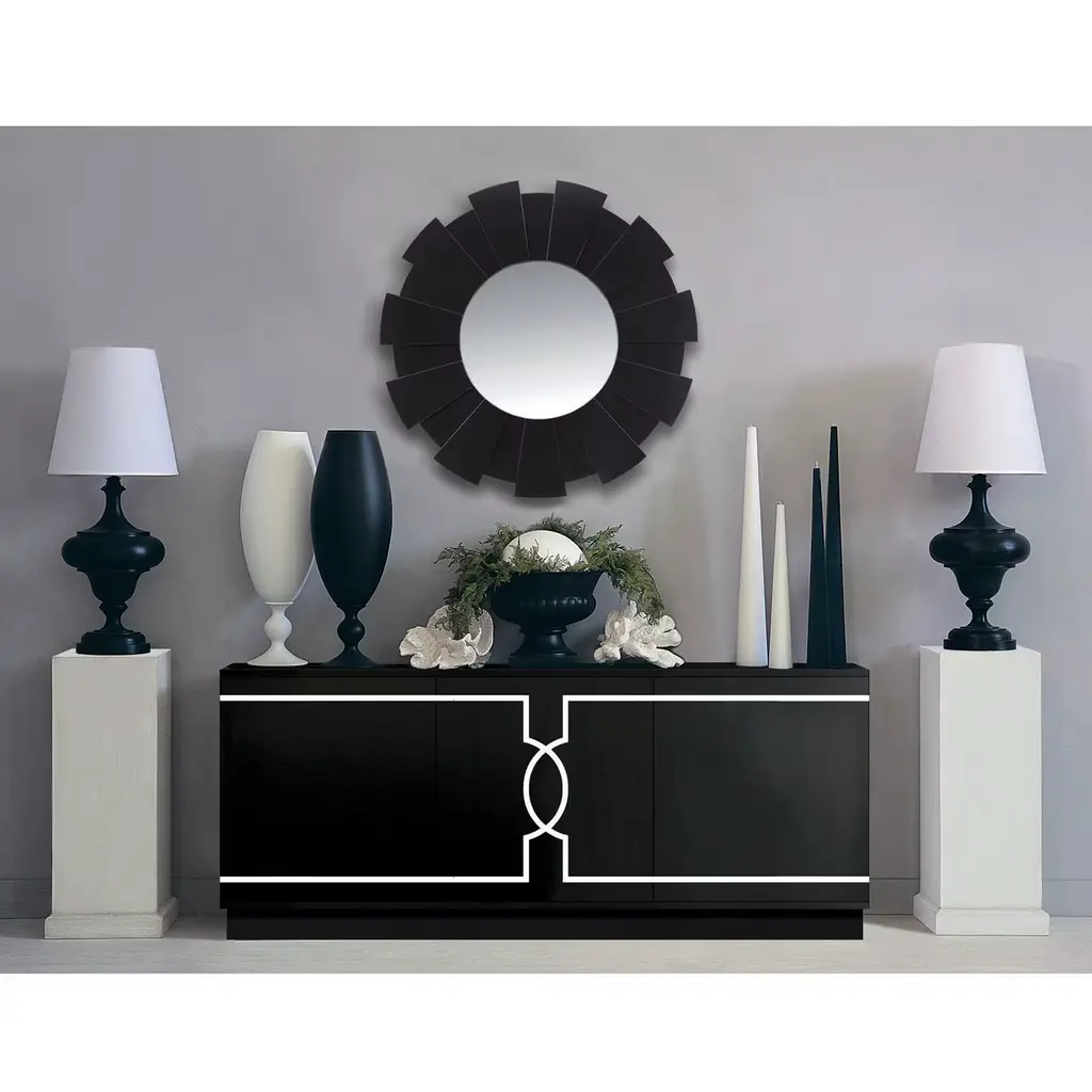 This three-door sideboard is beautifully crafted by the finest Italian artisans. The addition of a geometric motif on the front and sides offers a subtly glamorous appeal. The cabinet is available in a matt black and white lacquered finish. Designer: Isabella Costantini. Please ask the Concierge for customization options.