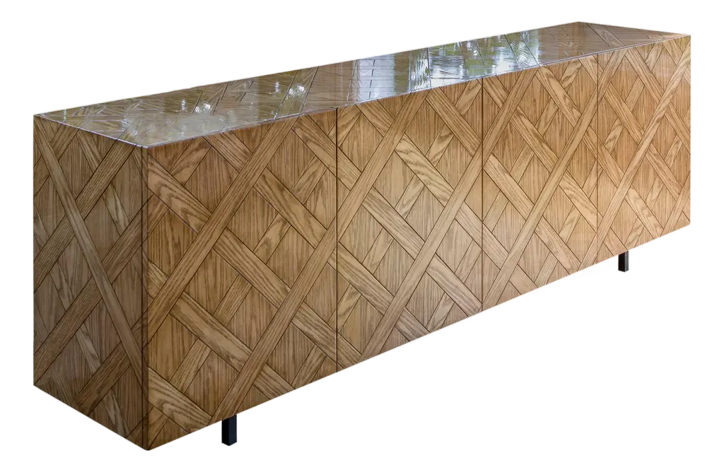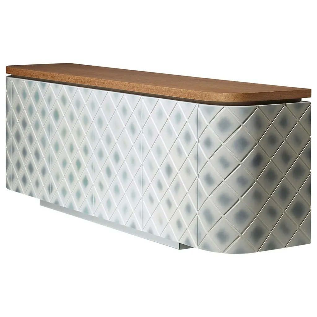Laurent sideboard 4 mirrored doors with 2 drawers lined inside (Lelievre fabric in images) and 4 interior shelves.Bespoke / CustomizableIdentical shapes with different sizes and finishings.All RAL colors available. (Mate / Half Gloss / Gloss)