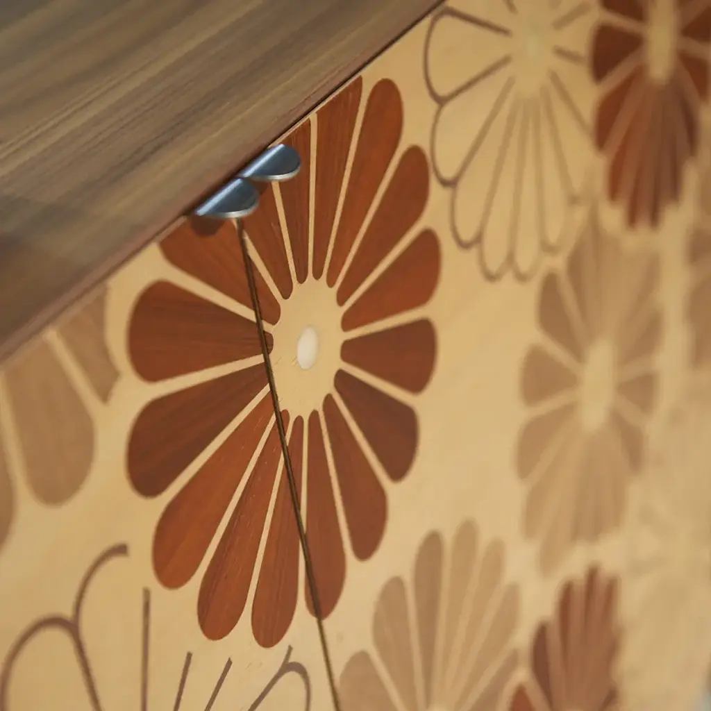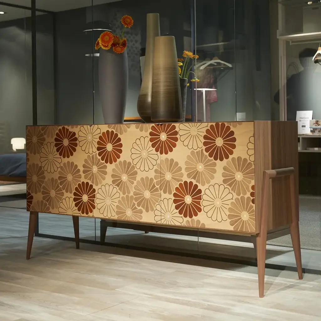 Made in Italy with passion and competence, the Lauta solid wood sideboard condenses aesthetics with a refined design. The solutions doors are made with flower pattern inlay in solid canaletto walnut.