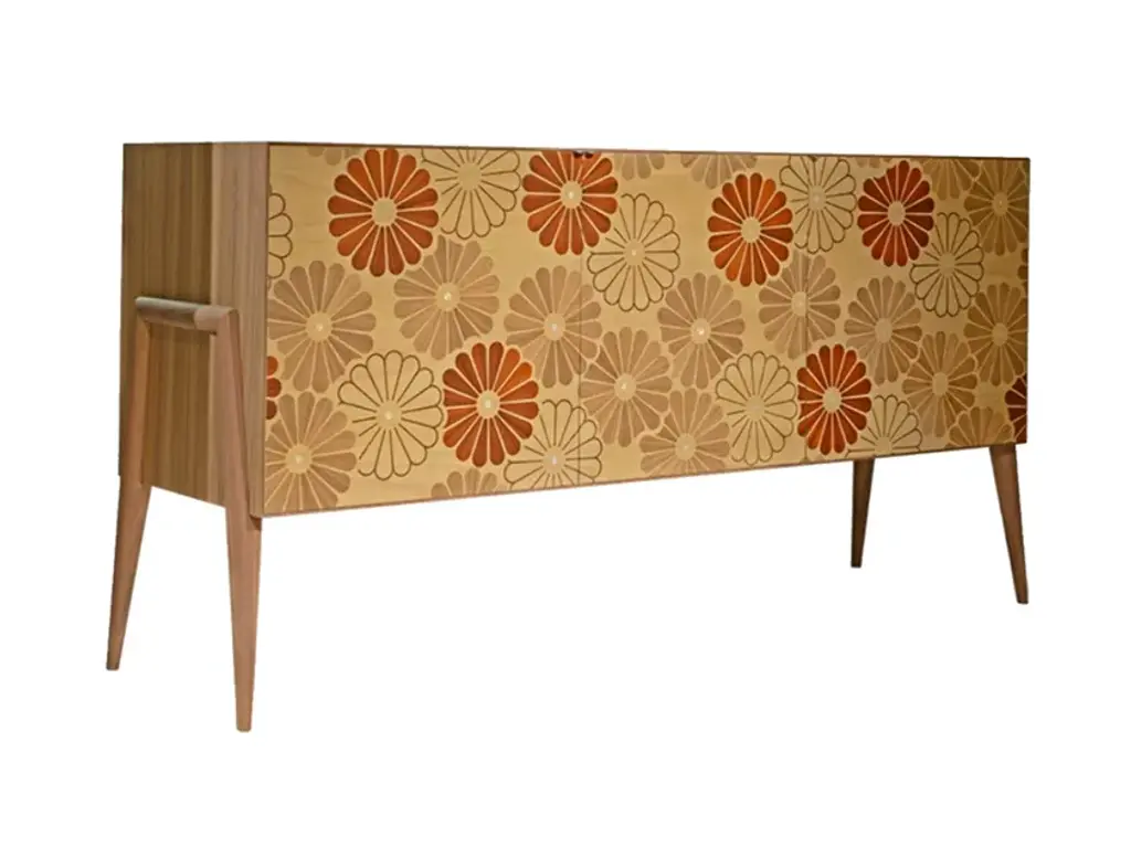 Lauta Floreale Solid Wood Sideboard, Walnut In Natural Finish, Contemporary