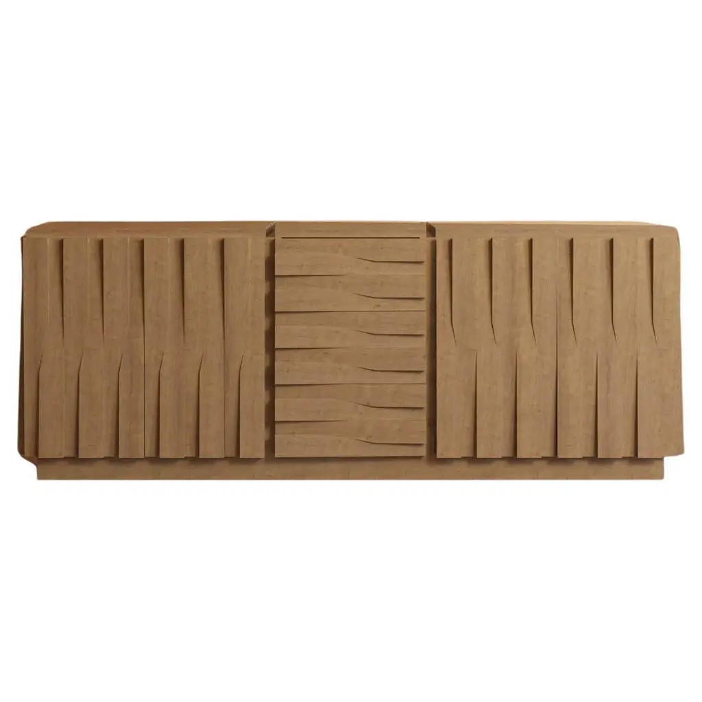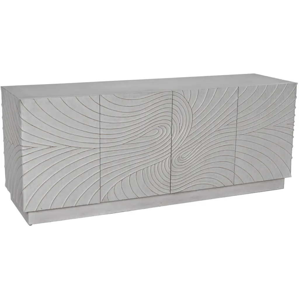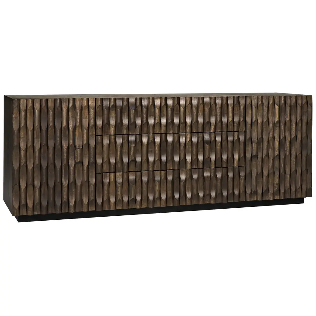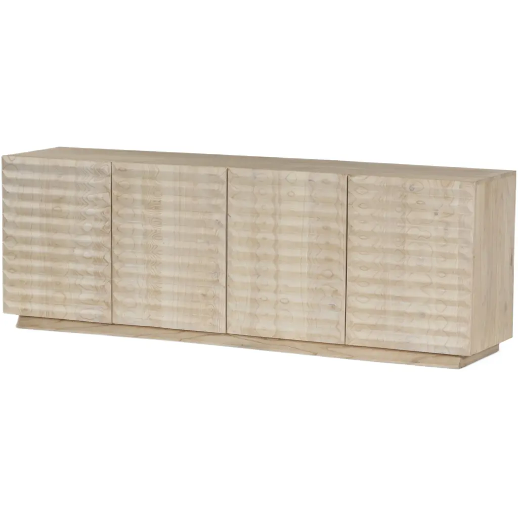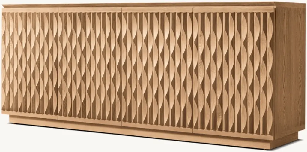 Artisan-crafted of American white oak, Lemaire's minimalist, midcentury silhouette plays counterpoint to a richly decorative façade. Carved with undulating vertical strips that crest and dip for a fluid feel, the dimensional design appears to float on its recessed plinth base.SHOP THE ENTIRE COLLECTION