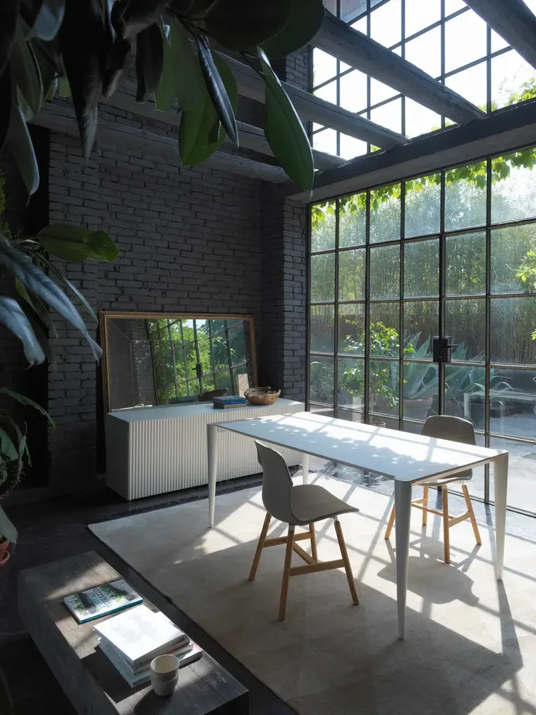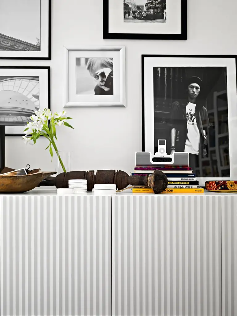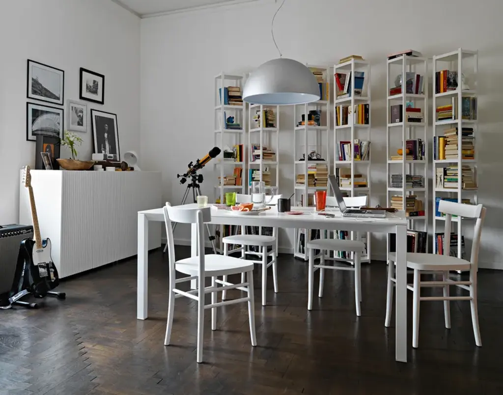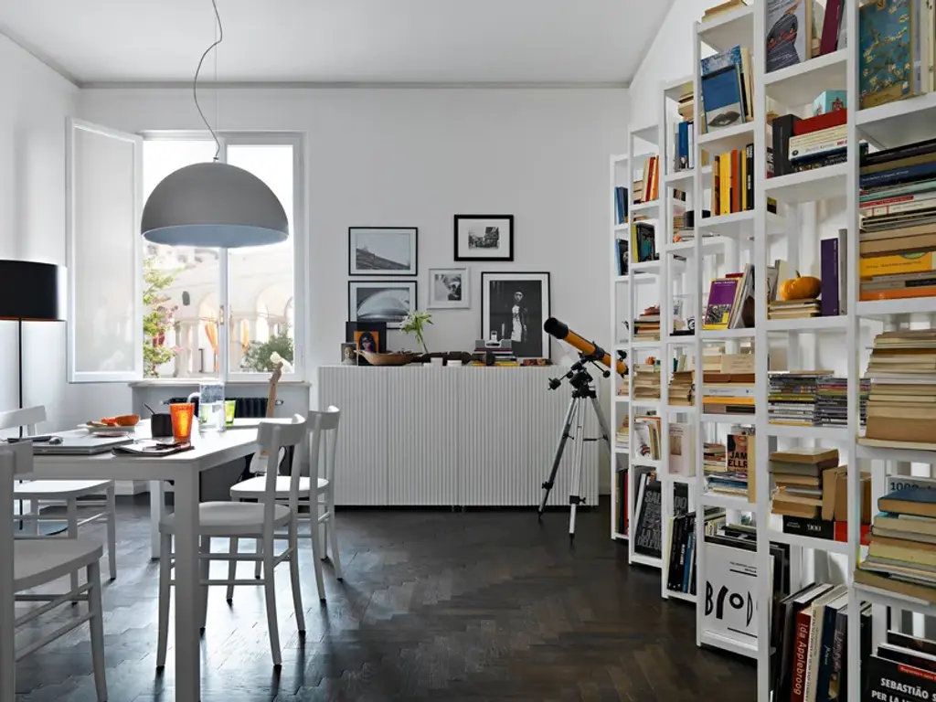 Leon Full Color is a Structure made from lacquered particleboard or MDF. Lacquered MDF doors. Internal shelves made from transparent tempered glass.Leon Full Color is the monochrome lacquered variant of Leon Wood. Leon plays with an awe-provoking optical effect that underlies its salient feature, that is, a standpoint-dependent visualization. From the front, the doors appear marked by vertical multi-coloured stripes yet, when observed from the side, with the naturalness of the light-shadow effect, dark or light uniformity prevails.