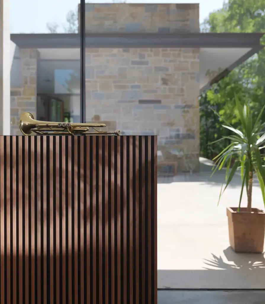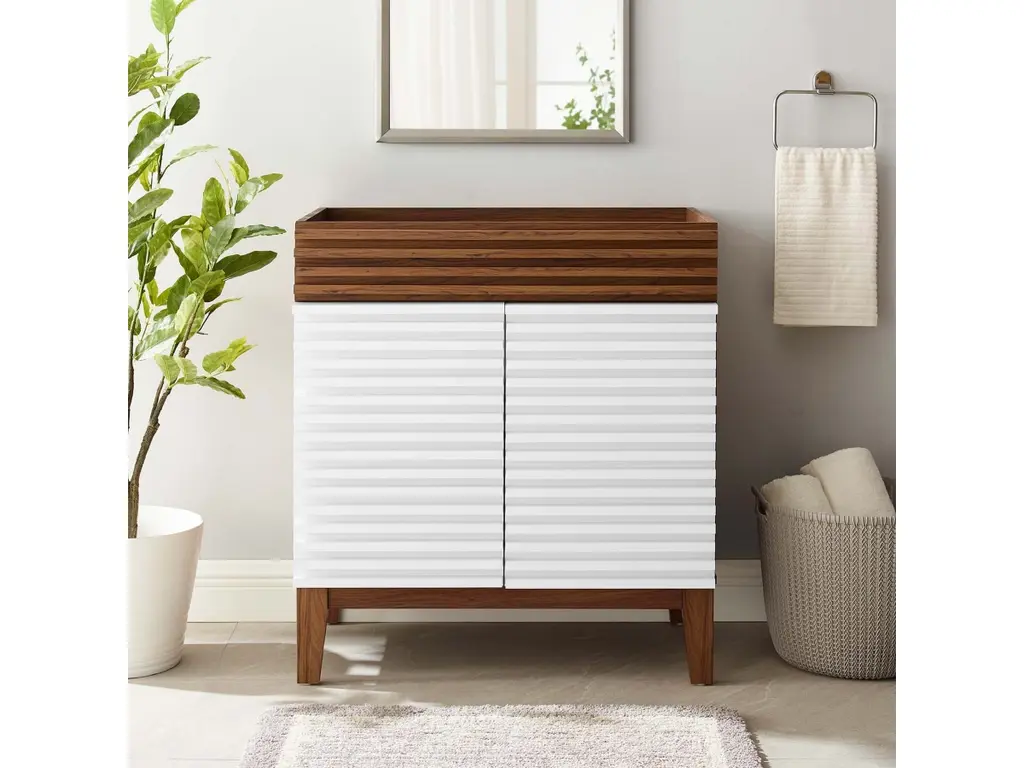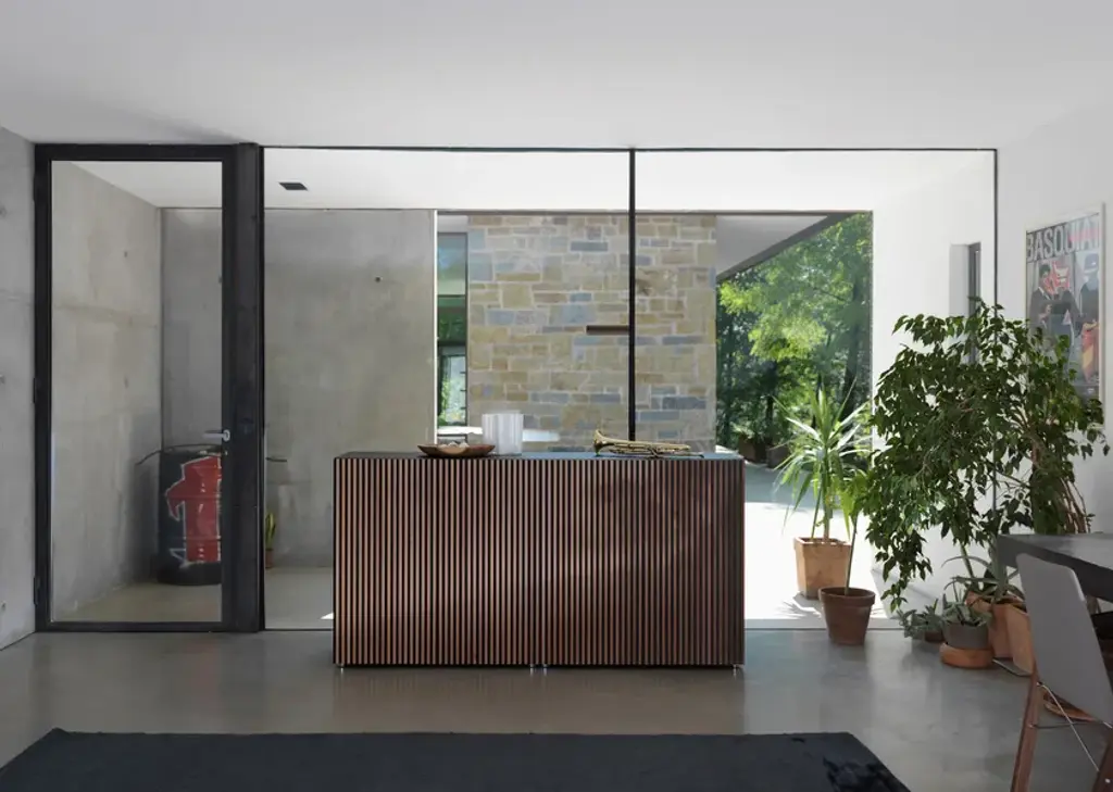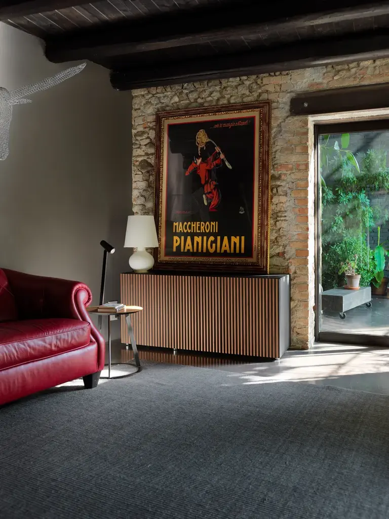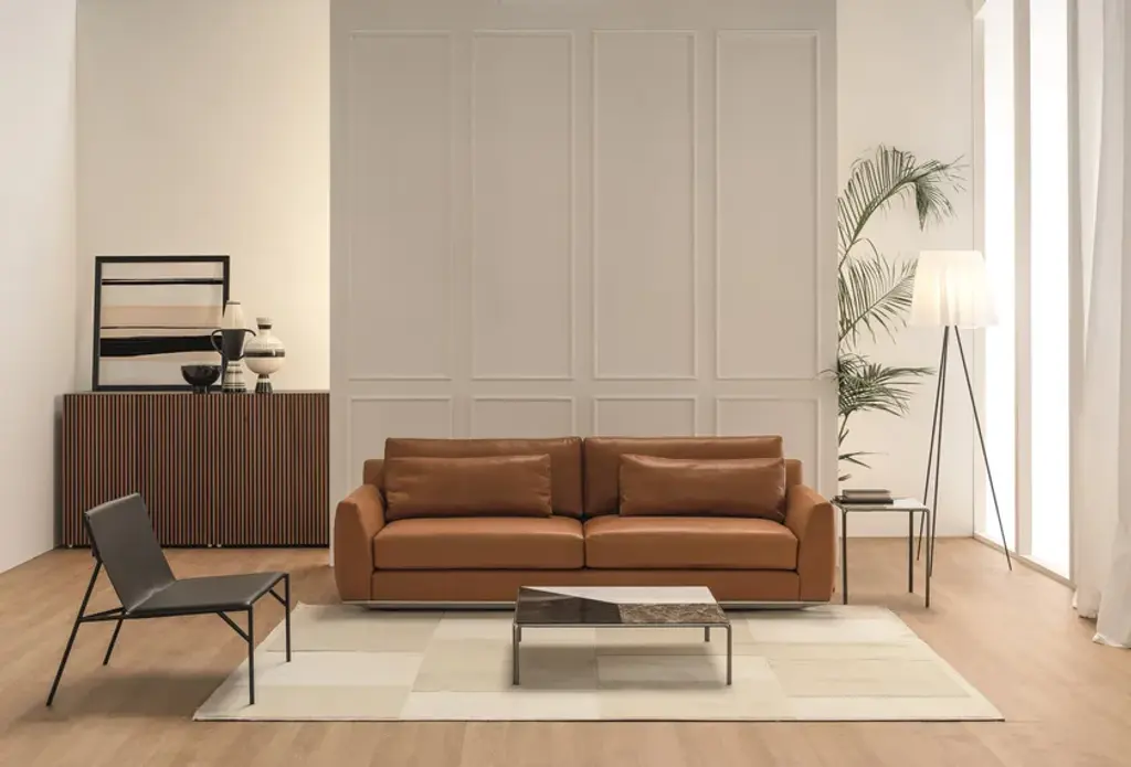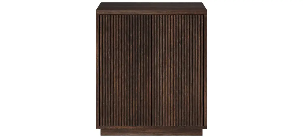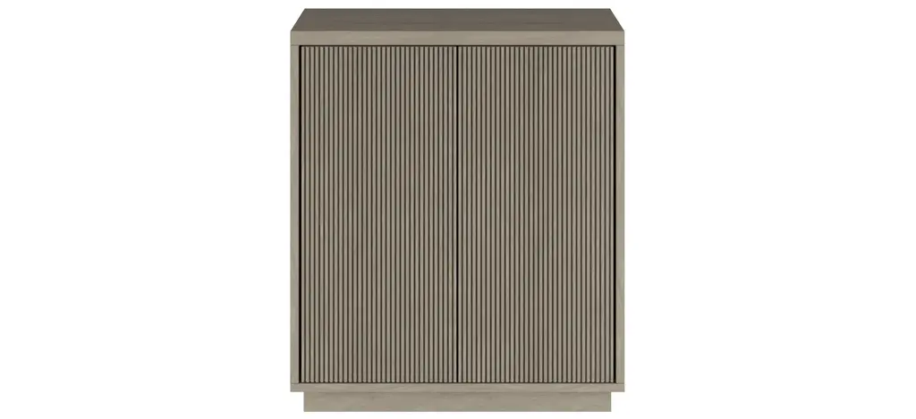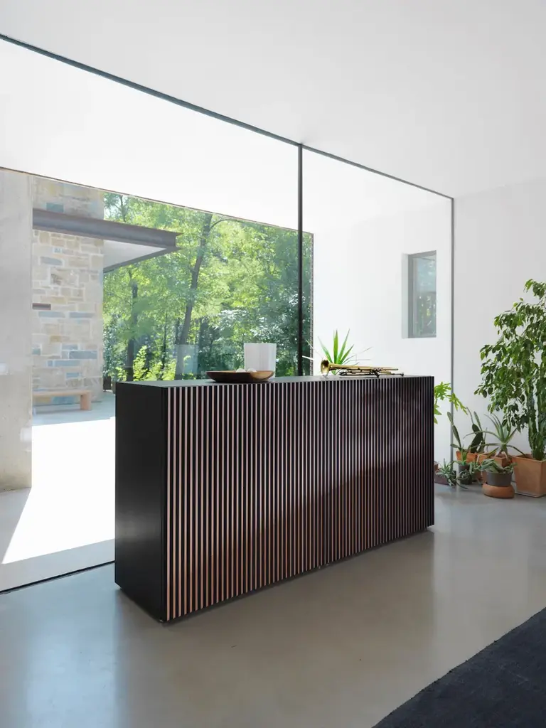 Leon plays with an awe-provoking optical effect that underlies its salient feature, that is, a standpoint-dependent visualization. From the front, the doors appear marked by vertical multi-coloured stripes yet, when observed from the side, dark or light uniformity prevails. Even the unique lacquered white finish produces the same effects through room lighting.Structure made from particleboard, either veneered and stained or melamine-coated and lacquered. The thickness of the structure and shelves is 18 mm, the back panel 10 mm, and the fixed central divider 36 mm. Doors with triangular section inserts made from stained or lacquered beech. Shelves made from transparent tempered glass, with polished edge, 5 mm thick. PVC or felt bumpers. Painted ABS adjustable feet with aluminium finish. Optional base, height 16 cm or 32 cm, made from powder-coated iron. Optional accessories: shelf for glasses, extractable cutlery box, extractable tray, wooden shelves.FINISHDoors: white lacquered, bicolor cherry and mocha beech, bicolor whitened beech and bois blondBody/doors' edges and interior feature: white lacquered, mocha beech, whitened beech, bois blondOptional metal base: white, black