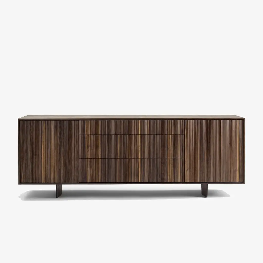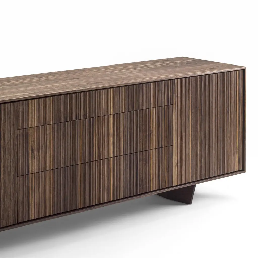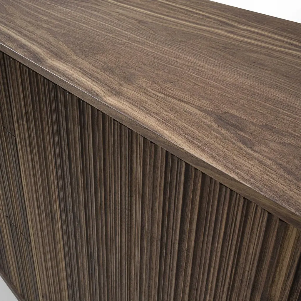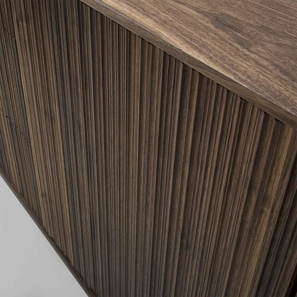 Sideboard Liama with solid walnut wood structure with vertical lines on front parts, with 2 doors and with 3 drawers with dovetail joints and with easy glide system.