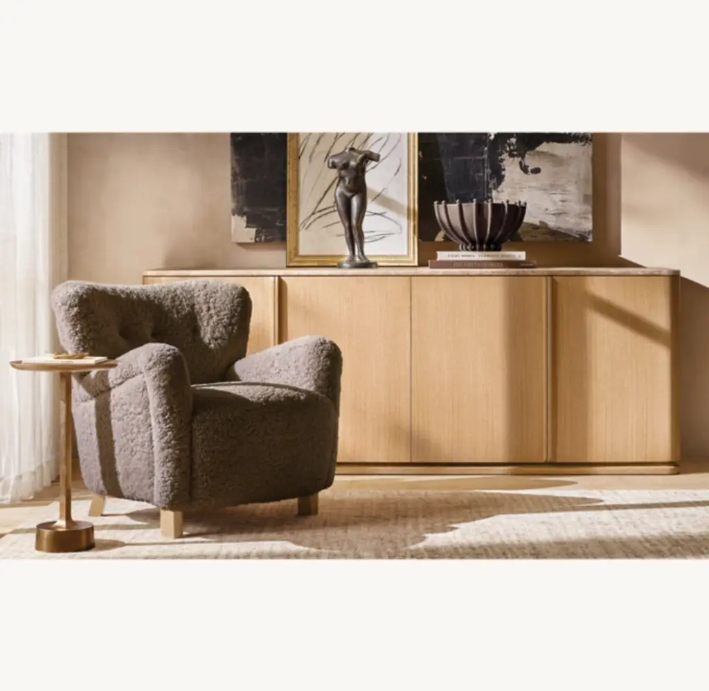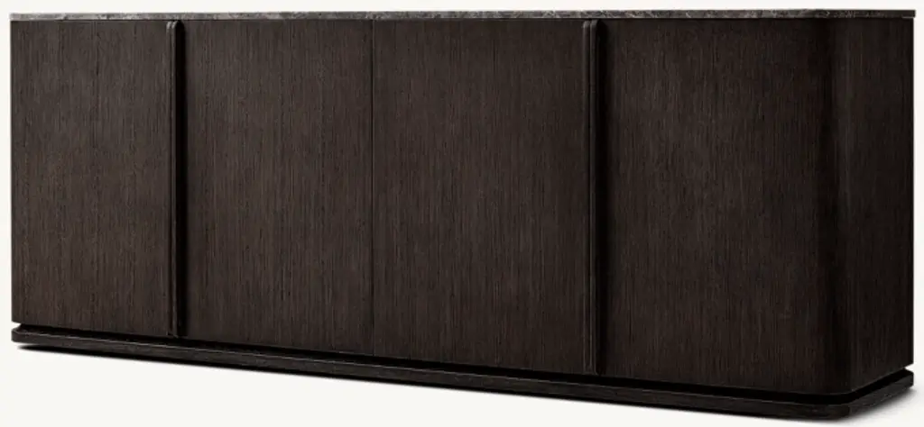 Designed by Julie Lawrence of Roanoke, Virginia, Ligné is handcrafted of American white oak and richly veined marble, each corner wrapped with elegant radius curves. A wire-brushed finish highlights the wood's natural grain, while a slender plinth and integrated oak hardware enhance the understated architectural profile. SHOP THE ENTIRE COLLECTION