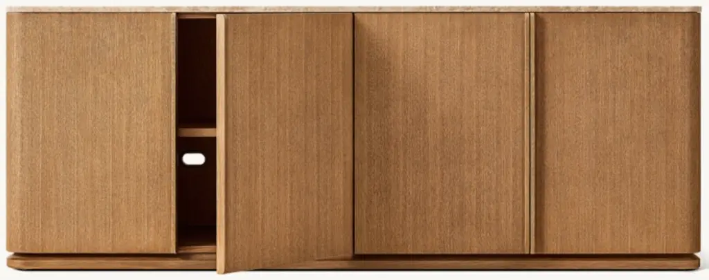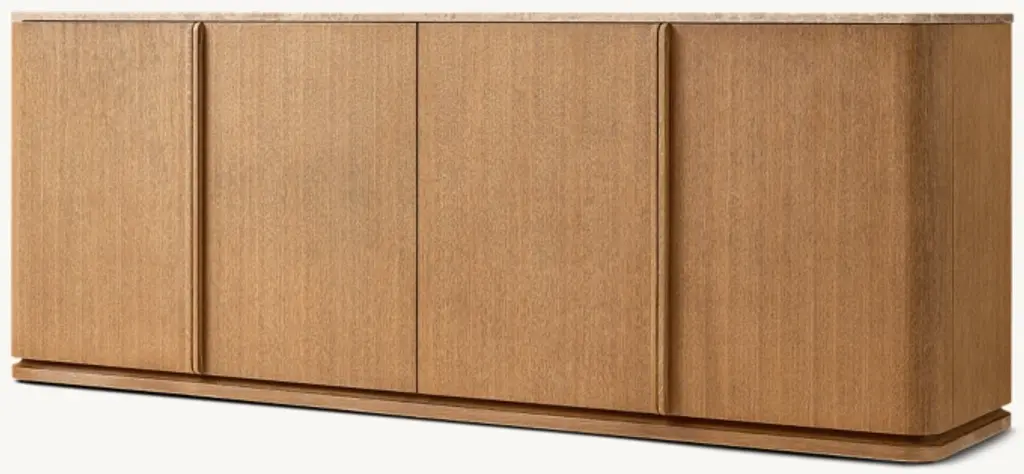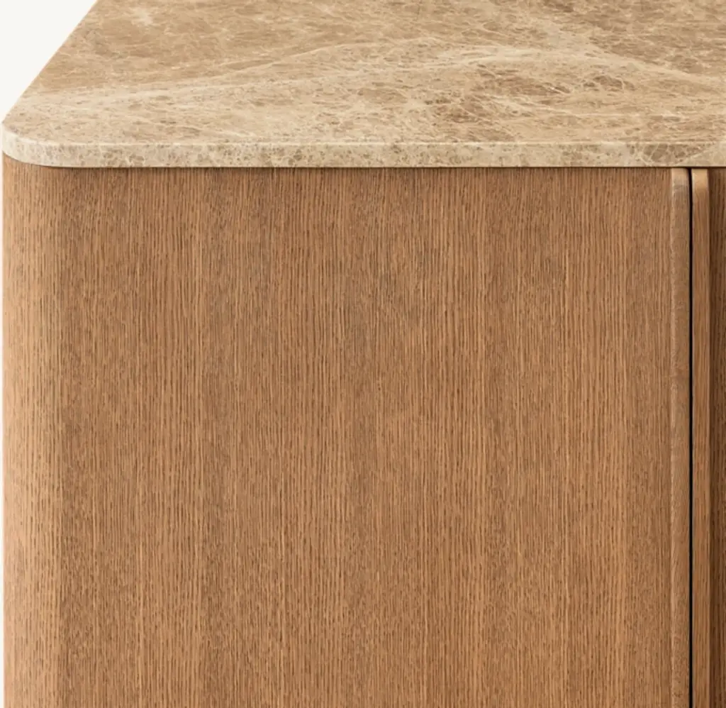 Designed by Julie Lawrence of Roanoke, Virginia, Ligné is handcrafted of American white oak and richly veined marble, each corner wrapped with elegant radius curves. A wire-brushed finish highlights the wood's natural grain, while a slender plinth and integrated oak hardware enhance the understated architectural profile. SHOP THE ENTIRE COLLECTION