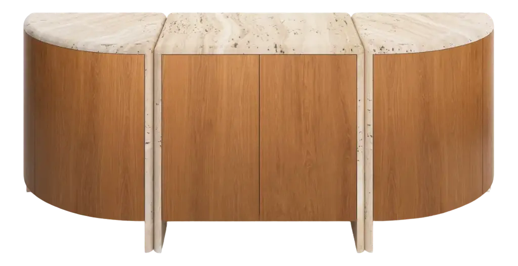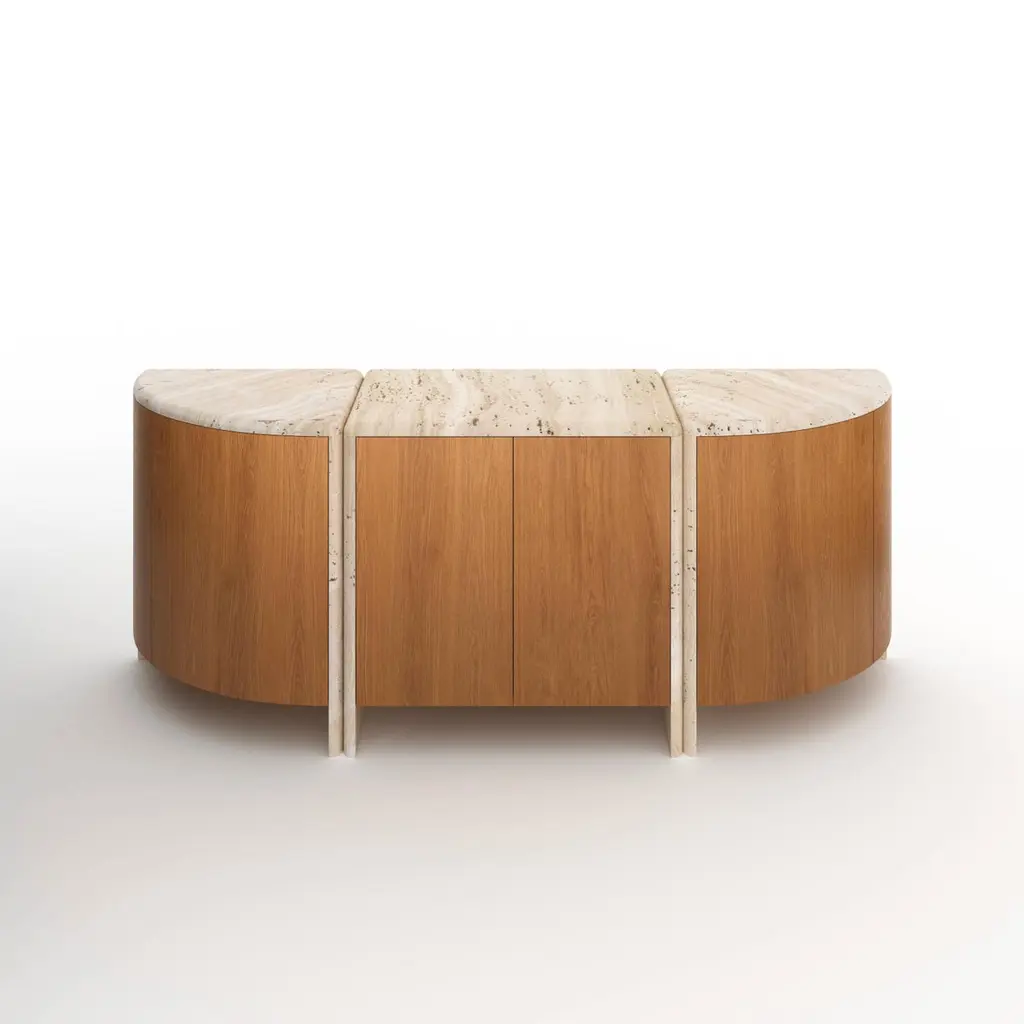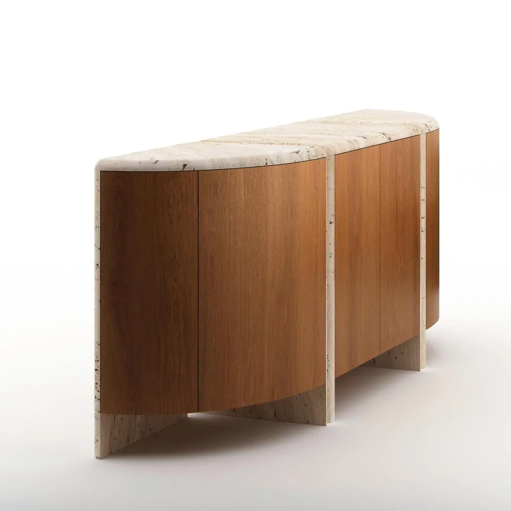 Lily Rounded Credenza In Honed Unfilled Navona Travertine And Oak By Fred&juul