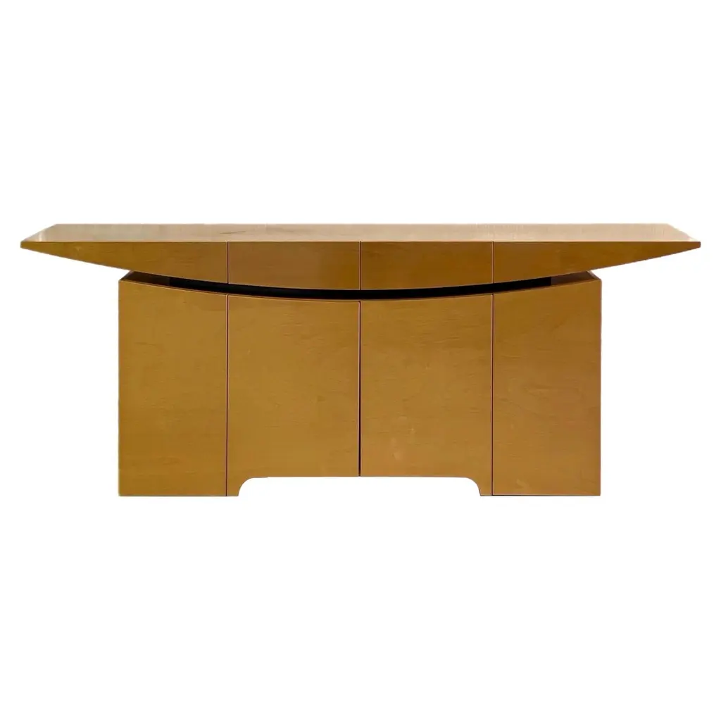 A credenza inspired by giant water lily pads and their curled rims, handmade out of 30 mm thick honed unfilled Navona Travertine with rounded, juxtaposed edges and Oak.Available in any size and material of choice.About Fred&Juul:Fred&Juul stands for Federico Minarelli and Julie Janssen, an Italian-Dutch architects’ duo based in Tuscany, Italy, that designs contemporary pieces, handcrafted by local artisans from traditional materials like brass, stone and solid wood. What sets them apart is that their designs value the inherent nature of these materials and how they are meticulously crafted, like the grainy, clouded surface of their Raffaele light in sandcast brass or the juxtaposed Oak grains in the marquetry of their Maurits table. With these aspects starring in the story of each of their pieces, their uniqueness goes beyond being merely one-of-a-kind.Fred&Juul’s design philosophy is aimed at sustainability and contrasting the throw-away society by creating pieces that will last, both for their exceptional quality and for their timeless appearance. The result is a contemporary collection that celebrates the refined artistry of centuries old Italian craftsmanship.