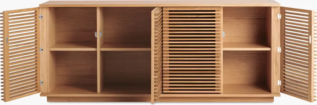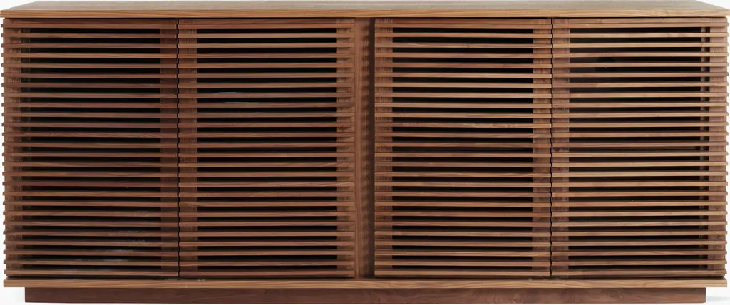 Designer Nathan Yong creates pieces that project quiet elegance, for which he credits hectic city living. “My work is a reflection of my yearning for nature in this concrete jungle," he says. The Line Collection (2012) is distinguished by horizontal lines that lend a sense of restfulness. This louvered design also serves a purpose on applicable units, allowing remotes to control devices inside. Line brings order to electronics, barware, tableware, and even office supplies. Made in Malaysia.