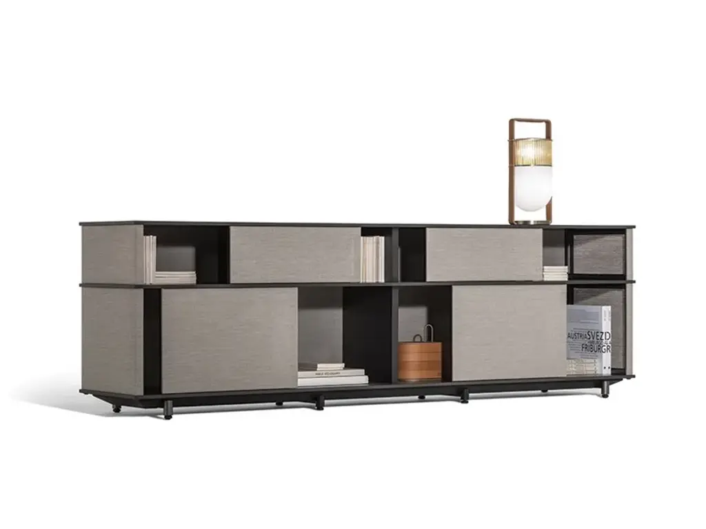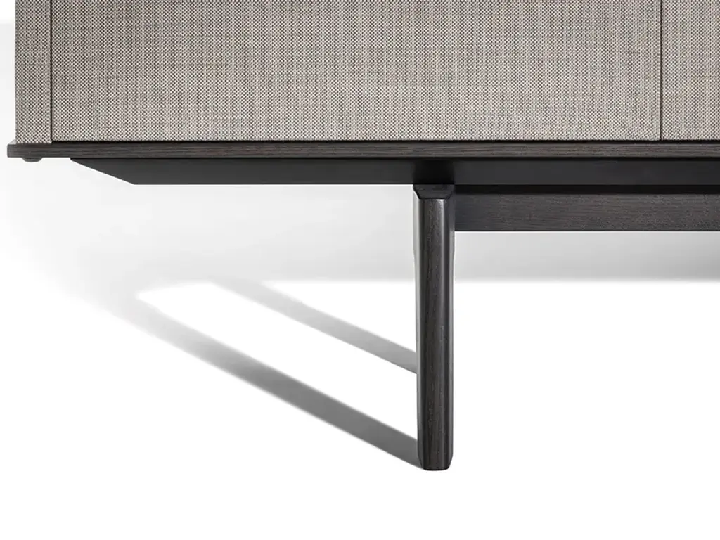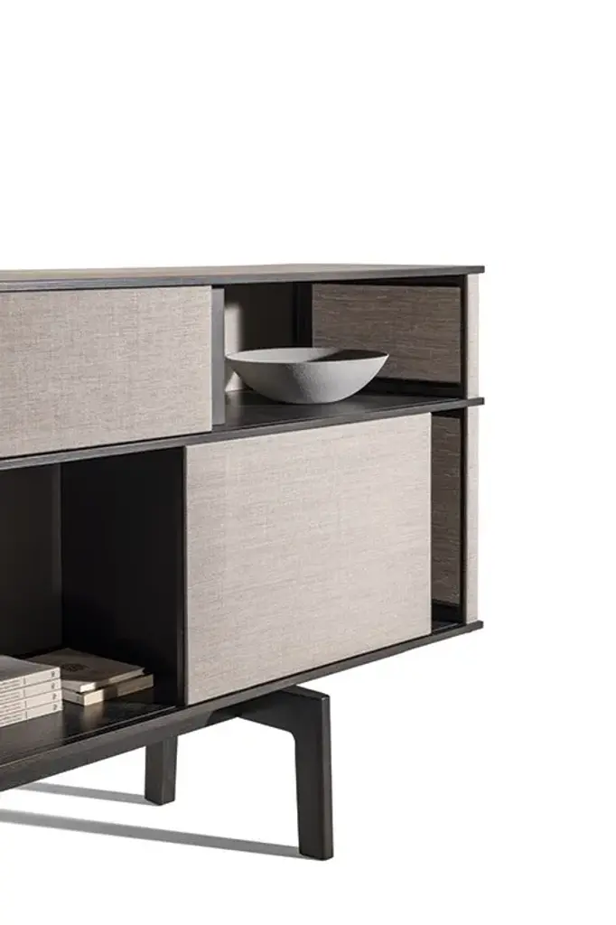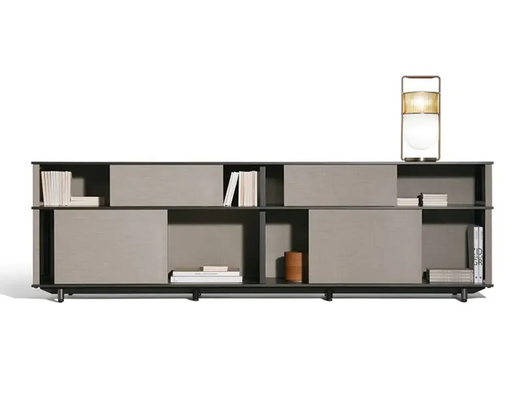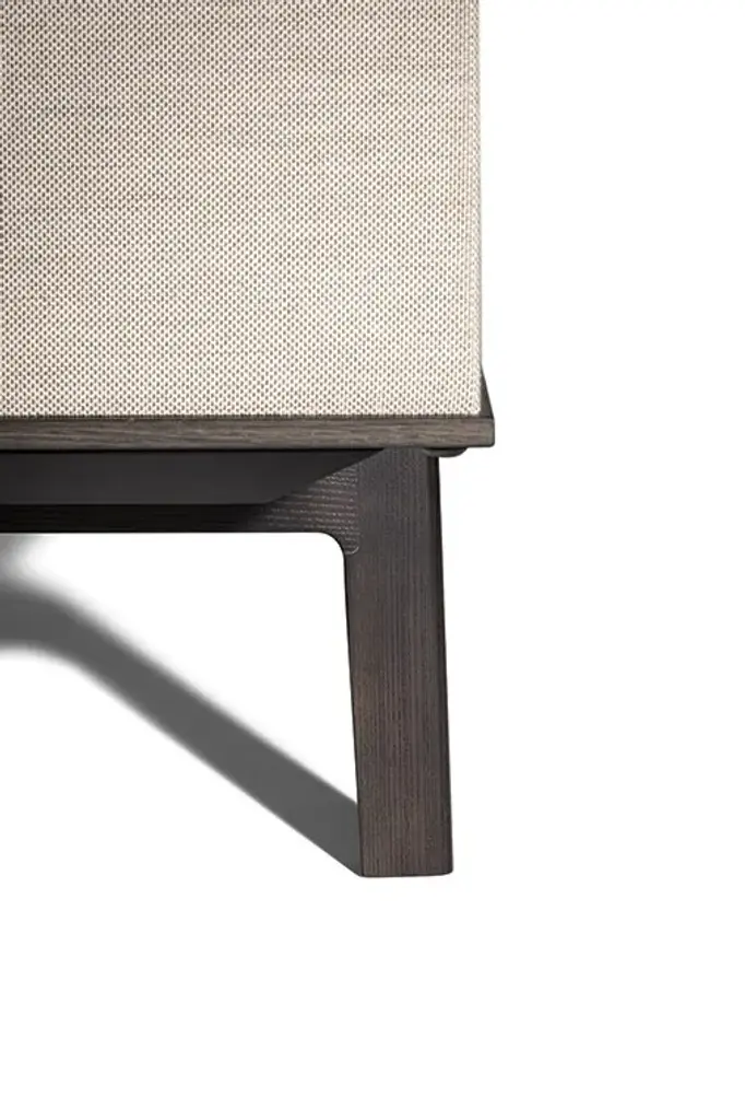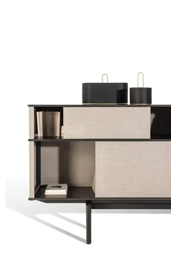 Inspired by the world of hi-fi loudspeakers, the Lloyd Tex self-supportingbookcase, designed by Jean-Marie Massaud, plays on the transparency and lightness of the Techno-fabric panels, a semi-transparent technical fabric in Light and Dark colours.The panels slide on invisible horizontal tracks, creating ever-changing sequences.In Lloyd Tex, the most advanced technology comes together with traditional materials such as wood, in a delicate balance between different spirits of material. And the interplay of solids and voids becomes even more evident, allowing a glimpse of the content of the freestandingbookcase,without completely revealing it.Lloyd Tex is available in different combinations of widths and heights, to furnish anything from modern home environments and the largest living rooms to smaller spaces, also making the double-sided bookcase a functional spacedivider.The horizontal elements on which the fabric louvres slide are created in HPL laminate, a material with a thin but sturdy thickness, veneered in oak with a matte lead finish.