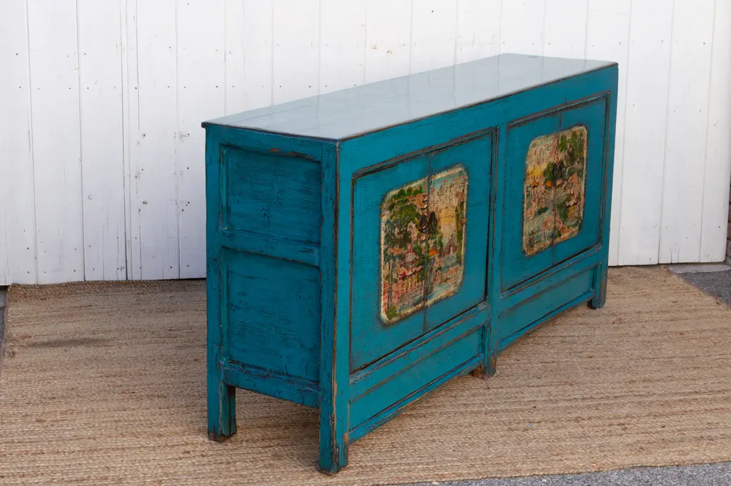 Long Azure Blue Chinese Sideboard