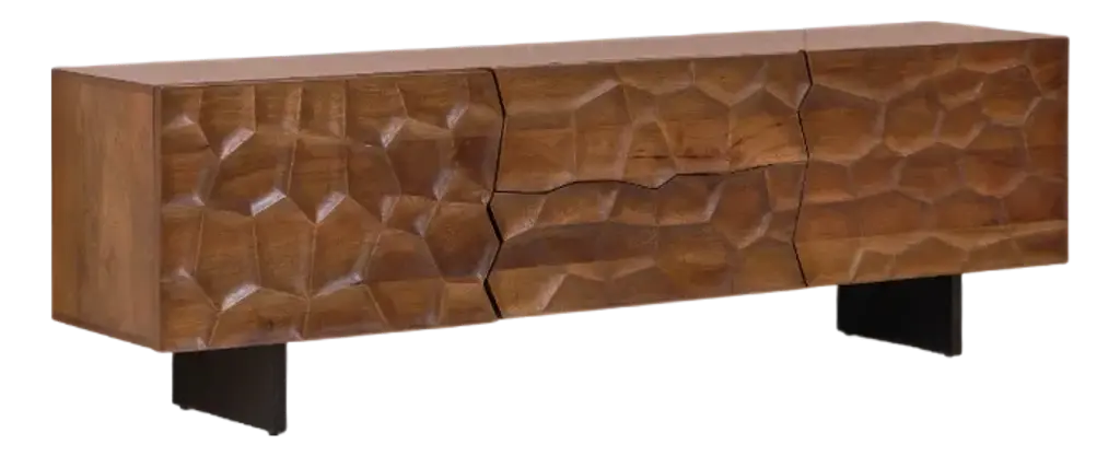The Drevalen Three Drawer Wood Sideboard by LOOMLAN offers a perfect blend of style and functionality for any home. Crafted from quality wood, it features a rich brown finish that adds warmth and elegance to your living space. The geometric textured front gives it a modern touch, making it not only a practical storage solution but also a stylish piece of furniture. Its sleek, black legs provide a stable foundation while enhancing its contemporary design. This sideboard is an ideal addition to dining areas, living rooms, or entryways, providing ample storage space for your essentials. Drevalen Three Drawer Wood Sideboard With Drawers Features: Overall Dimensions (WxDxH): 69 x 16.5 x 31 Color: Brown Material: Wood Design: Modern Front: Geometric textured Shape: Rectangular Legs: Black Storage: Three drawers Style: Fits various decor styles Use: Ideal for dining areas, living rooms, entryways