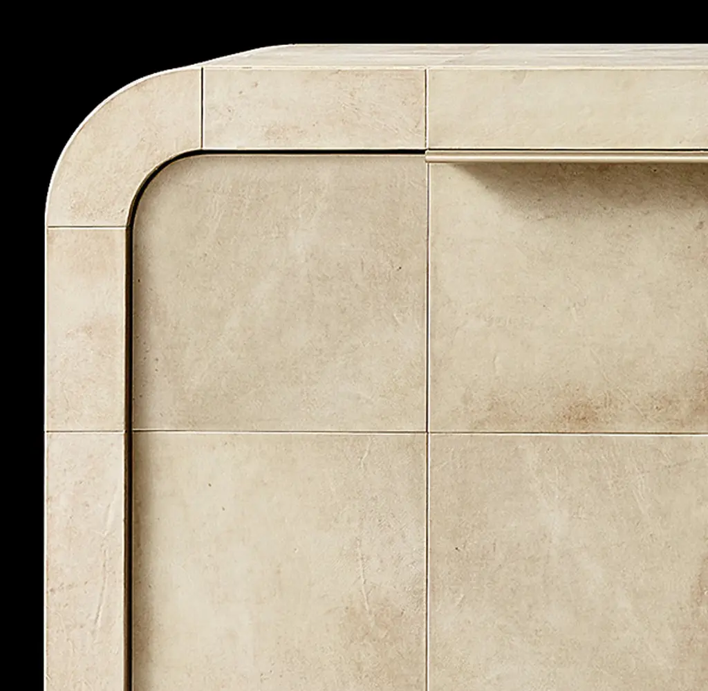 Recalling the distinctive 1930s style of celebrated French designer Jean-Michel Frank, our collection marries minimalist silhouettes and luxurious materials. The flowing lines and graceful curves of the waterfall forms are sheathed in hand-pieced parchment, a study in elegant refinement. SHOP THE ENTIRE COLLECTION