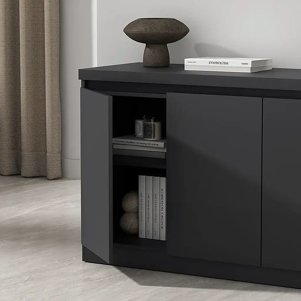 The Luckytube black sideboard is all about clean design and everyday ease. With smooth lines, soft-close doors, and a matte finish, it brings a quiet presence to any room. Inside, spacious shelving keeps things organized, Simple, modern, and made to last. Customer assembly is required.