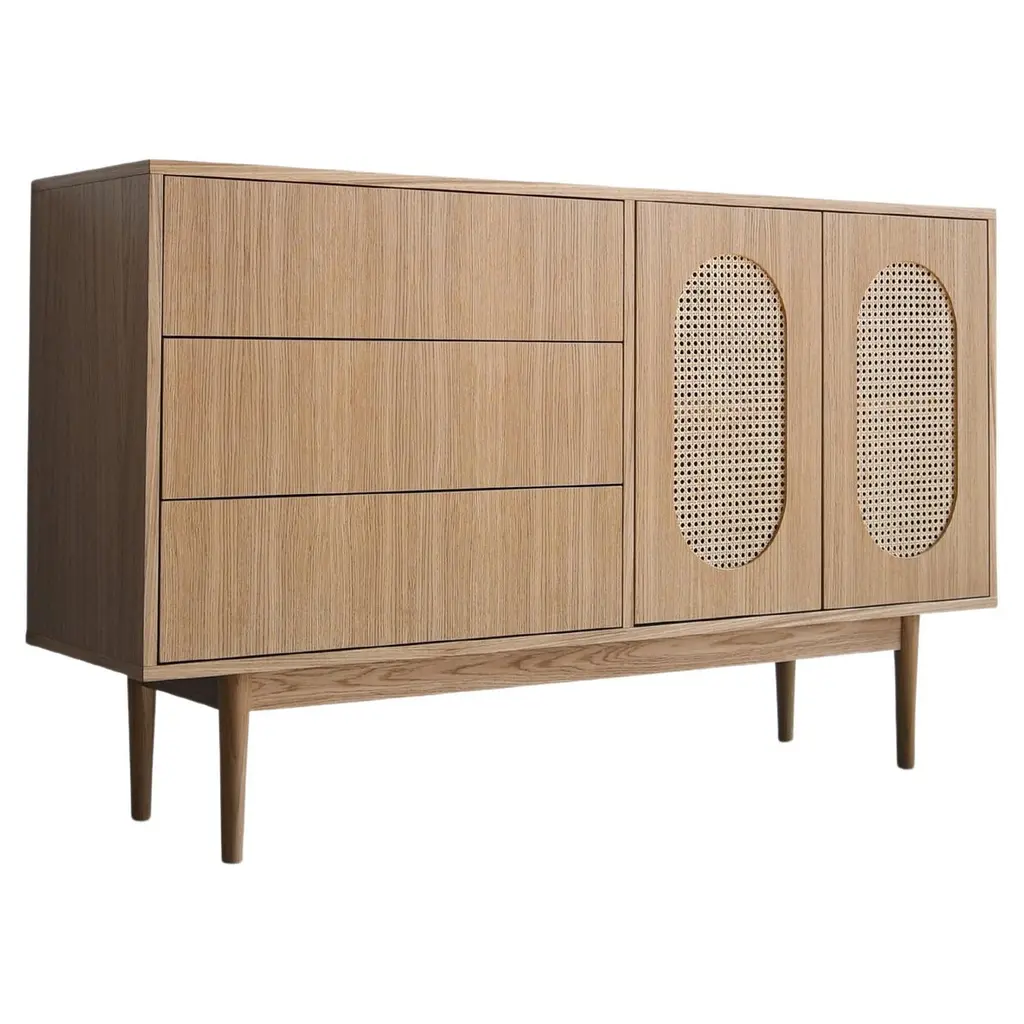 Luna Medium Sideboard by PastformDimensions: D 40 x W 170 x H 90 cm.Materials: Stained and varnished wood.Available in different wood color finishes: Whiskey, Rum, BPA, Nobel, Brandy, Schwarz, and Natura. Prices may vary. Available in three different widths: 150/170/190 cm. Please contact us.Rooted in a good traditionThe Pastform Furniture studio dates back to the 1990s. Having in mind the idea of a traditional family company, Dawid Gełeta established a carpenter’s shop in 1997. The company specializes in the manual production of utility furniture. Times have changed and with them, fashion has changed. In 2016 we decided to change the direction, following the growing demand for vintage furniture.My name is Mateusz Gełeta, I am the son of the carpenter who founded the company. From an early age, I have watched my dad’s work. He put his whole heart into creating furniture, polishing every detail with his strong hands and making sure that nothing escaped our attention before sending the product to the customer. He made sure that every piece of furniture was perfect and refined. We remain true to these principles.Following the blow, I decided to create a harmonious combination of modern quality with the classic style of the 1960s. This is why I designed and created a unique collection of wonderful furniture, which, in addition to its well-thought-out functionality, also creates a perfect design and composes original arrangements.The golden age of interior designIn the 1960s interiors used to take on a very characteristic touch. All over the world, this style was called a mid-century modern, locally it was simply – retro furniture. Simple, elegant minimalistic form, without unnecessary decorations and splendor. Decorating with the idea of an uncomplicated composition, it allows for an undisturbed selection of the arrangement accessories and emphasizes a high level of functional comfort. One might say – a perfect piece of furniture. Comfortable, hiding surprisingly many items despite quite neat dimensions, made of noble species of wood and created by hand, with a focus on carefully refined details. No wonder its popularity is growing so much.Unique, refined, with a soulEach piece of the Pastform collection represents a unique style. Thoughtful concept of usable comfort, refined details, carefully selected raw materials, and proven accessories. We use only high-quality boards which we veneer with oak, American walnut, and other durable wood species. They are carefully oiled with the best, hard, ecological oil waxes, giving the furniture its final shape. This technology brings out the natural beauty of wood, exposes the grain and unique design of each piece, highlights the beautiful color, and allows to achieve timeless durability.This is how unique, thoughtful, and refined furniture with a soul is created.Thinking about futureWe are trying to positively create the world of which we are a part, contributing to a better tomorrow. We cooperate with local suppliers, support small companies and production plants, care for ecology, and respect the needs of the land. We always strive to establish long-lasting, based-on-trust relationships with customers and contractors.Flexible, with openness and heart on handWe sincerely like what we do. Playing with the shape, structure, and texture of wood is fascinating. Creating new arrangements and coming up with innovations that will meet your expectations. We are proud of our products and we are happy to present you with our collection of refined furniture.All our vintage furniture can be made on request – fulfilling the boldest dreams and fantasies. See our offer and if you want to know more, feel free to contact us. We are waiting for you!