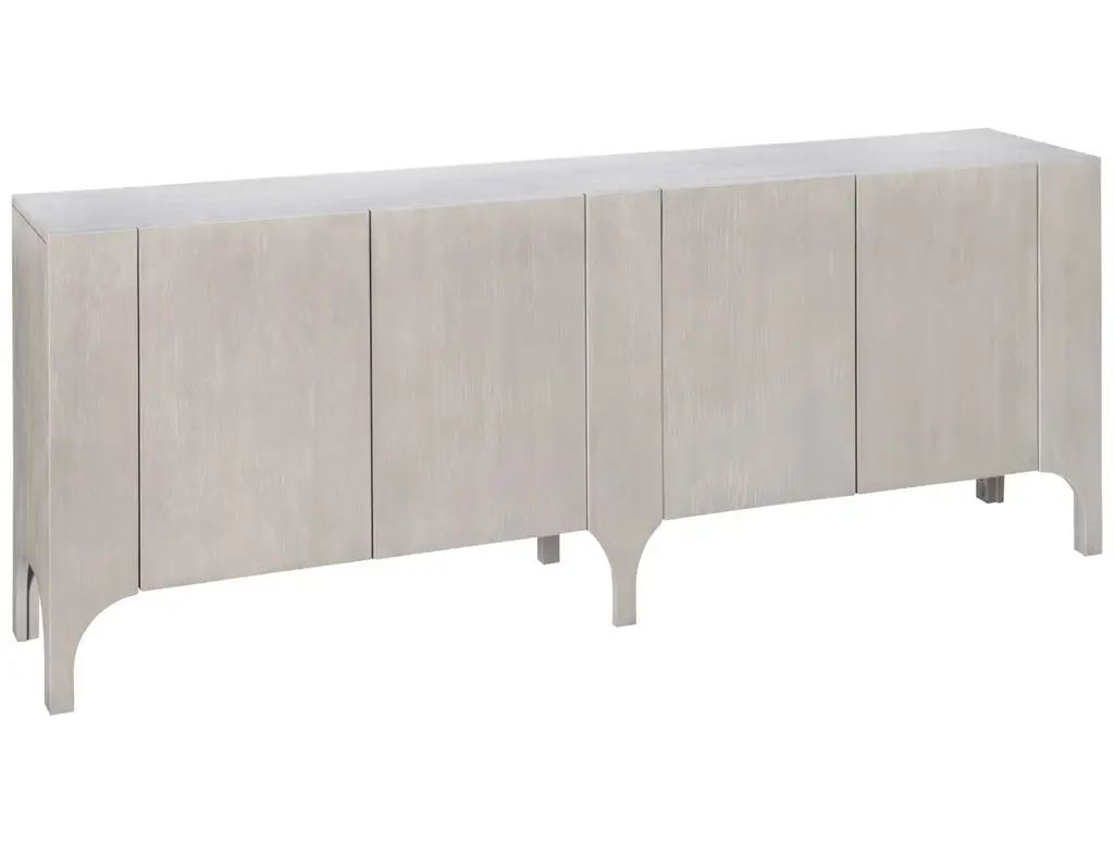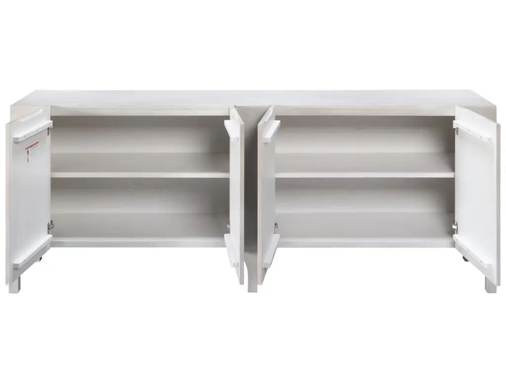 Maximize your storage space with the Mayia Sideboard from Dovetail Furniture and Designs. This classic sideboard features a streamlined profile with four doors that open to reveal shelves for plenty of storage. Elegant curves at the square legs add the finishing touch to this versatile sideboard.