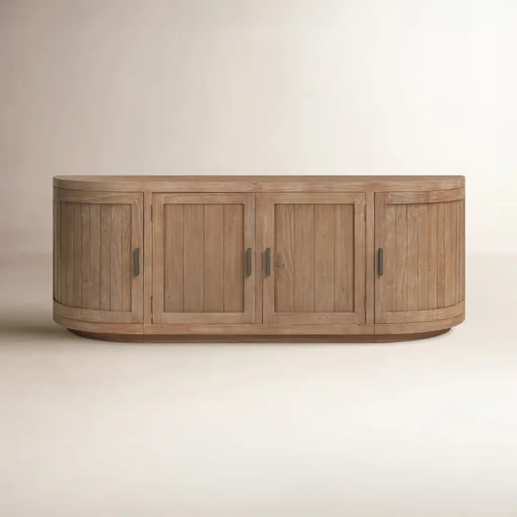 Four Hands brings their exceptional craftsmanship to a timeless collection rooted in Amber Lewis' perennial California style. Rounded edges and bun feet bring a classic feel to a modern sideboard with six doors. Offering spacious interior storage and a fresh, organic look, this buffet cabinet is a chic spot for stashing dishes or glassware in your dining room.