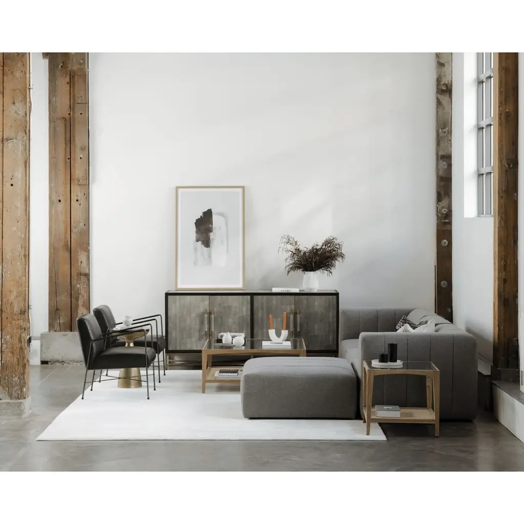 The Mako Sideboard is a classy affair of solid oak. Brass legs and handles instill this piece of furniture with a feeling of elegance and warmth. The cabinet is finished off with a matte lacquer for an understated look because the Mako speaks for itself.