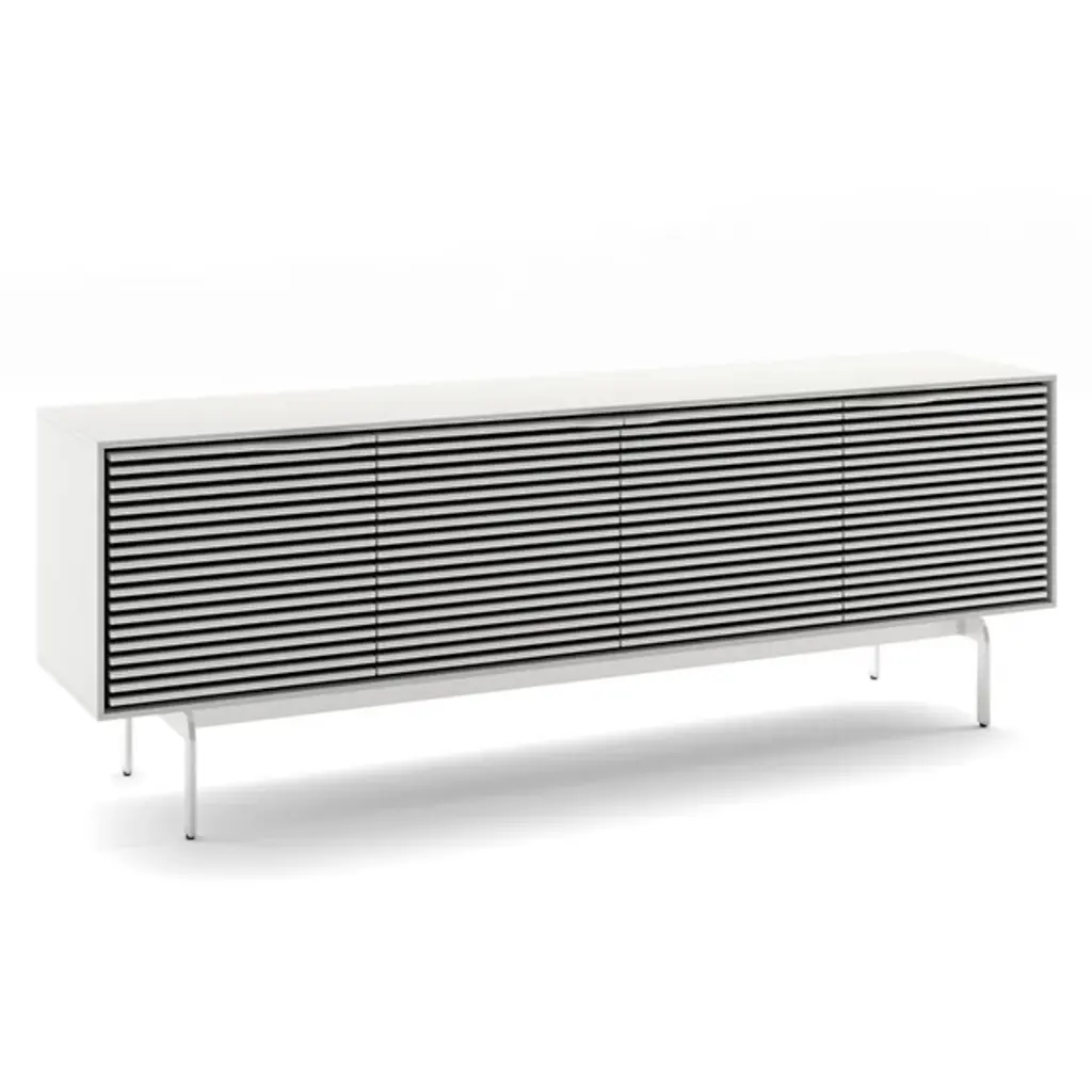 The largest version of designer Maria Ruiz' Cubist-inspired rectilinear media unit, Malmö Technic brings oak or walnut veneer construction with an expanded range of fine finishes. Featuring 3 easy access drop-down doors and interior cable management and plug access, the sideboard also offers 3 customizing base heights in black or bronze.