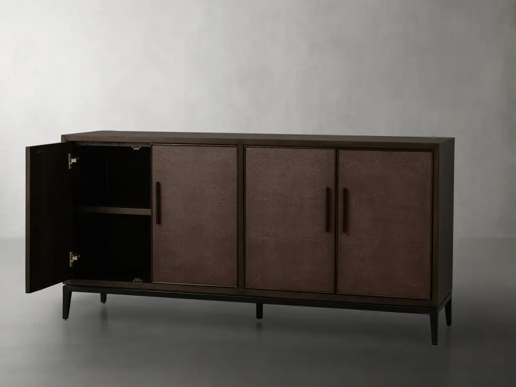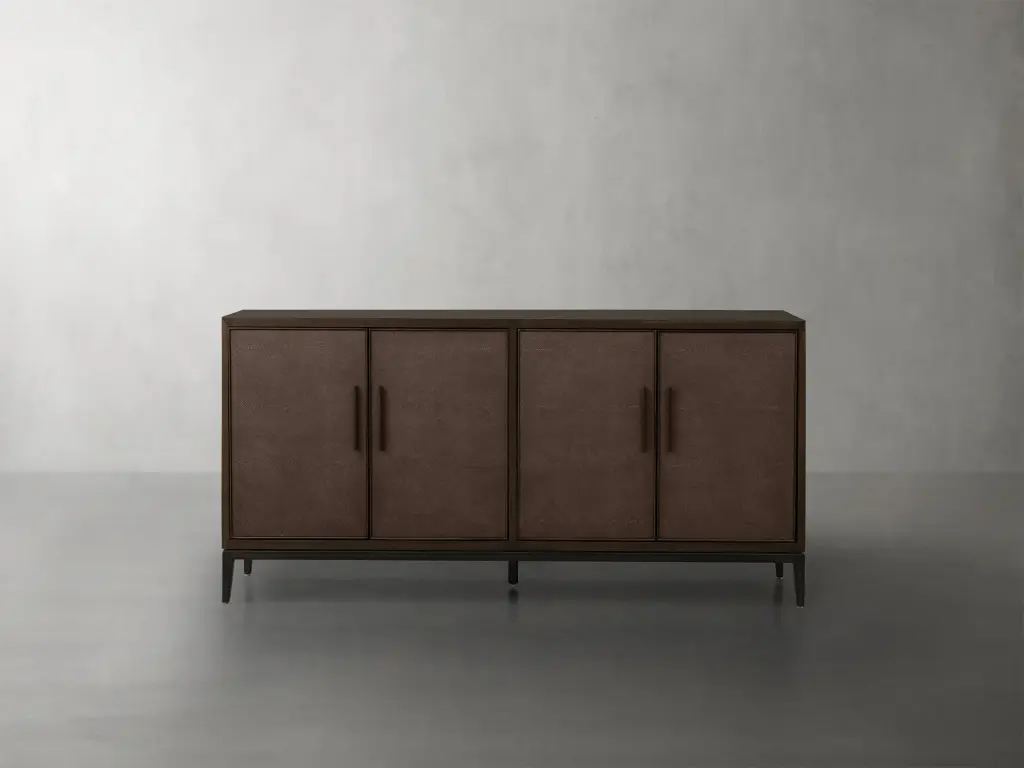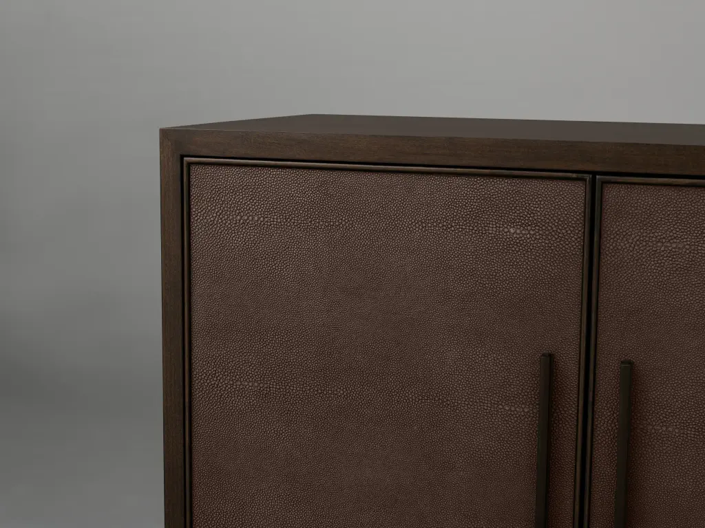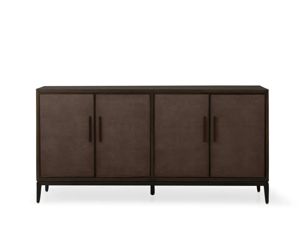 Featuring a sleek aesthetic, our Malone Collection is artisan-crafted from solid parawood or oak wood—depending on your preferred finish—and surfaced with walnut or elm wood veneers. Insets made from reconstituted leather embossed with a shagreen pattern are complemented by hand-applied finishes to give this collection a modern look with intriguing textural details. Elegant silhouettes and metallic accents will elevate your space to a new level of refinement.