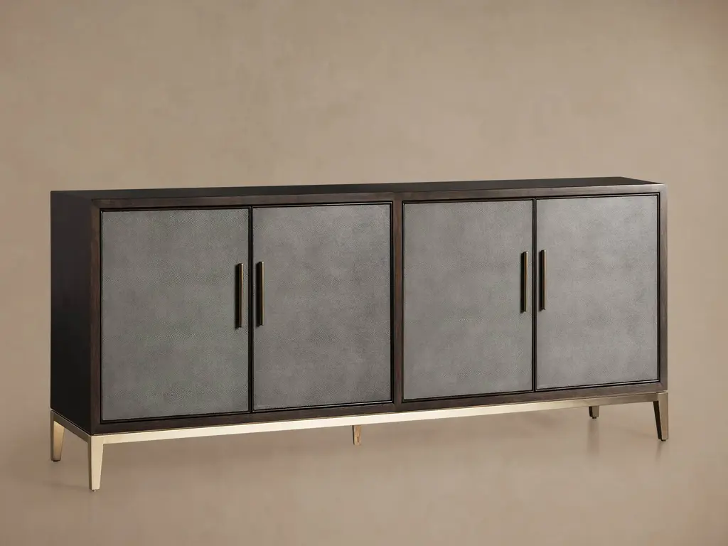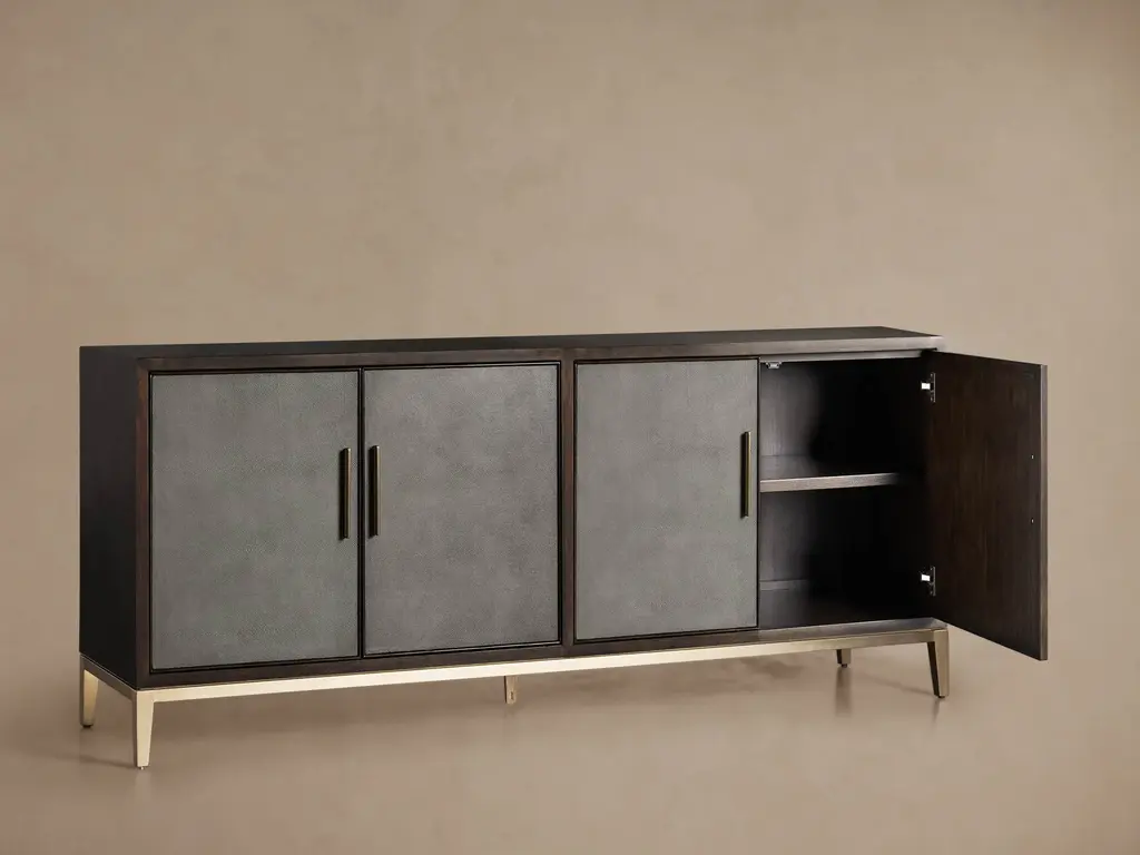 Featuring a sleek aesthetic, our Malone Collection is artisan-crafted from solid parawood or oak wood—depending on your preferred finish—and surfaced with walnut or elm wood veneers. Insets made from reconstituted leather embossed with a shagreen pattern are complemented by hand-applied finishes to give this collection a modern look with intriguing textural details. Elegant silhouettes and metallic accents will elevate your space to a new level of refinement.
