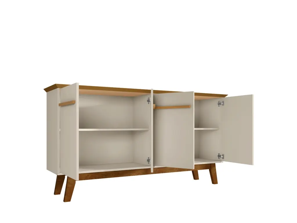 Update your dining area or living space and entertain in style with the Yonkers sideboard, which acts as a buffet and storage center. It's the perfect blend of mid-century design and modern functionality. Cabinet-style doors with a soft-close feature offer ample space for tucking away dishes, tablecloths and dinnerware to host the ultimate dinner parties. Add decorative items to its smooth base to personalize the piece and make it your own. Beautiful craftsmanship and intricate detailing shine with the sideboard's durable splayed wood legs, beveled top and sleek handles.