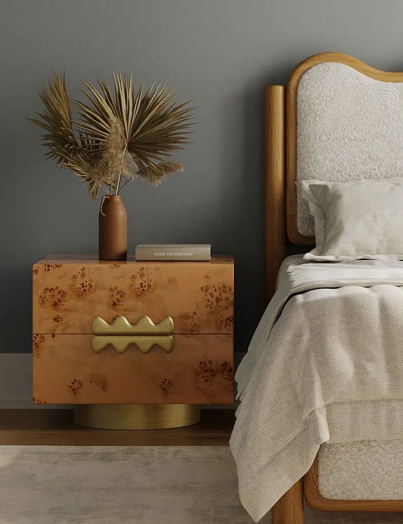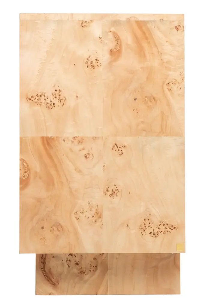 Infuse a distinct character to your living space with the Baka Sideboard by Versmissen. This table is meticulously constructed using Mappa Burl veneer, a wooden material with mesmerizing natural grains and hue. It features a spacious two-door cabinet to keep your space organized.