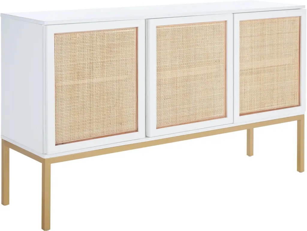 A timeless, clean-lined silhouette is elevated by detail-rich wood grain and woven cane door fronts to create this Margot Sideboard. Crafted from natural mango wood, its finish complements the two cane doors for a tonal storage piece. This buffet cabinet's roomy interior includes two adjustable shelves.