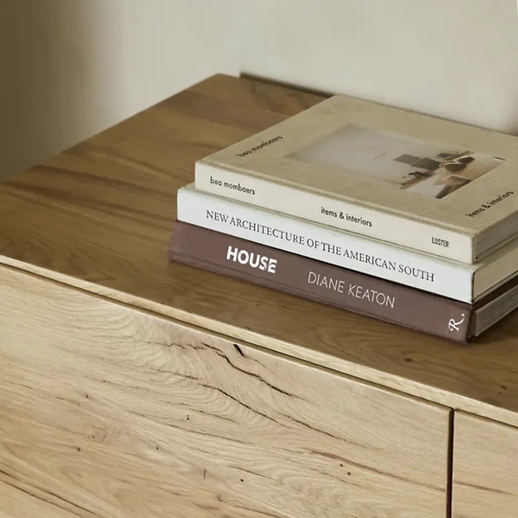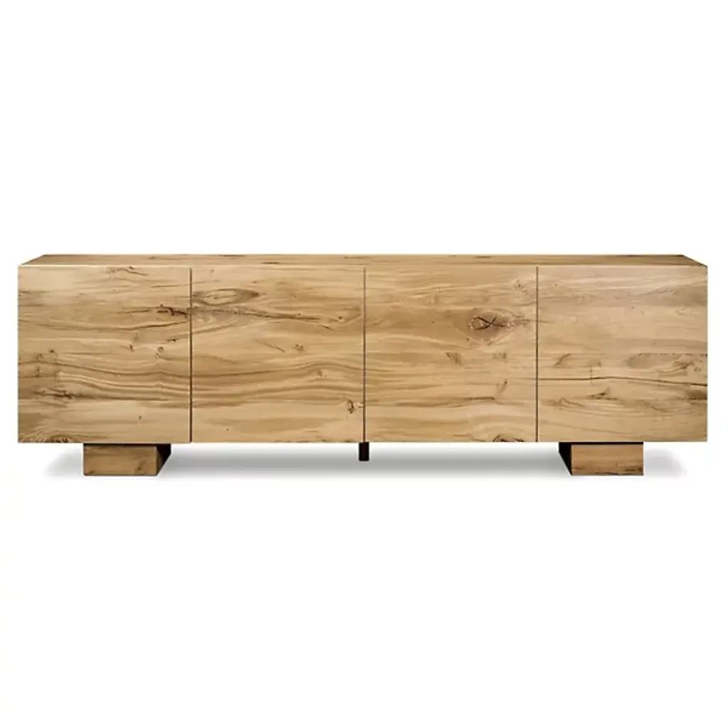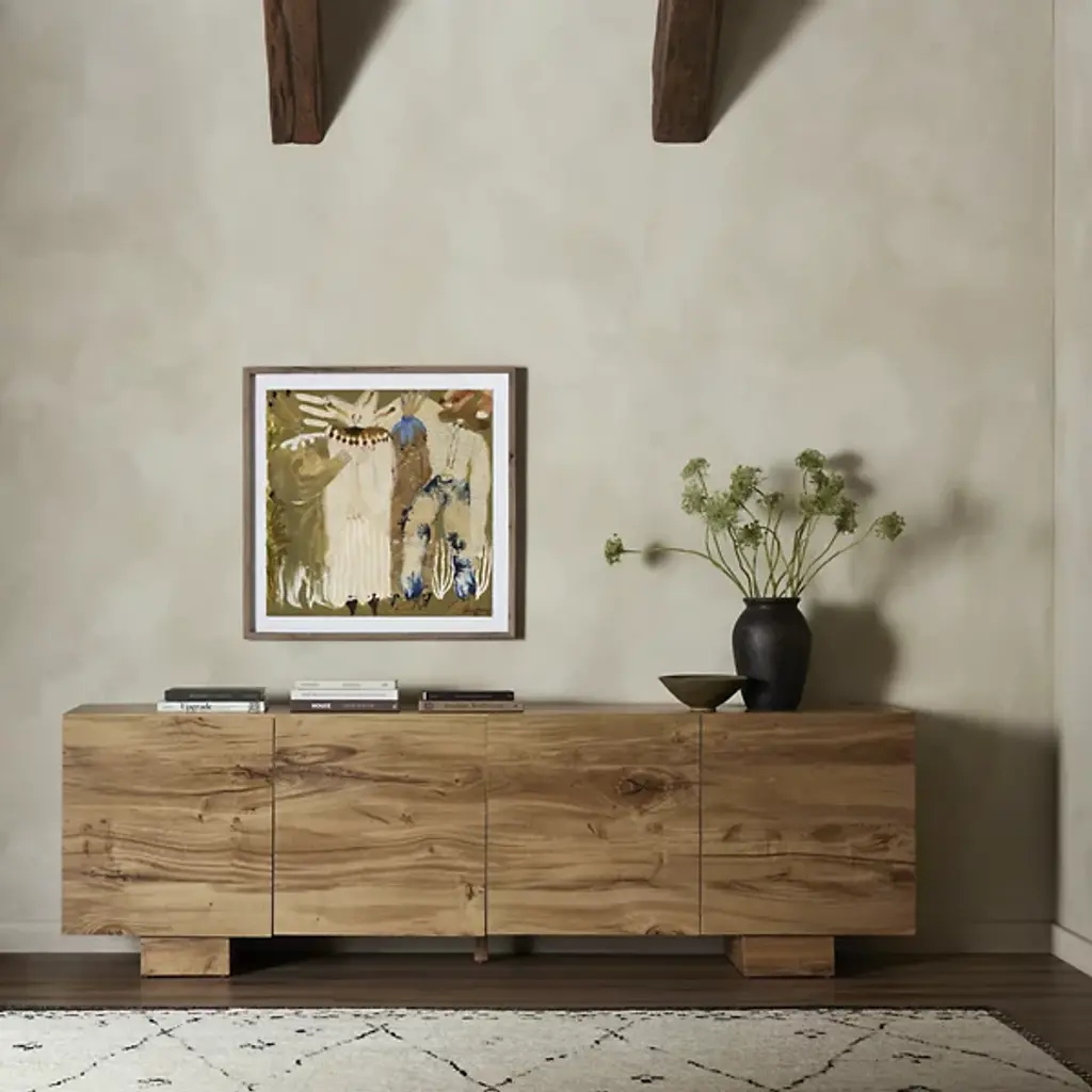 The Mariana Sideboard from Four Hands, a collaborative creation by Thomas Bina and Ronald Sasson, seamlessly blends modern minimalism with subtle Brazilian influences. It’s fashioned from natural reclaimed French oak, while its large-scale silhouette embraces simplicity, allowing the exquisite natural woodgrain to captivate. The construction incorporates three removable and adjustable shelves behind four soft-closing doors, providing a simple style and ample functionality. At the same time, the design, made in Vietnam, beautifully balances contemporary elegance with rustic modern aesthetics, celebrating the beauty of reclaimed materials.
