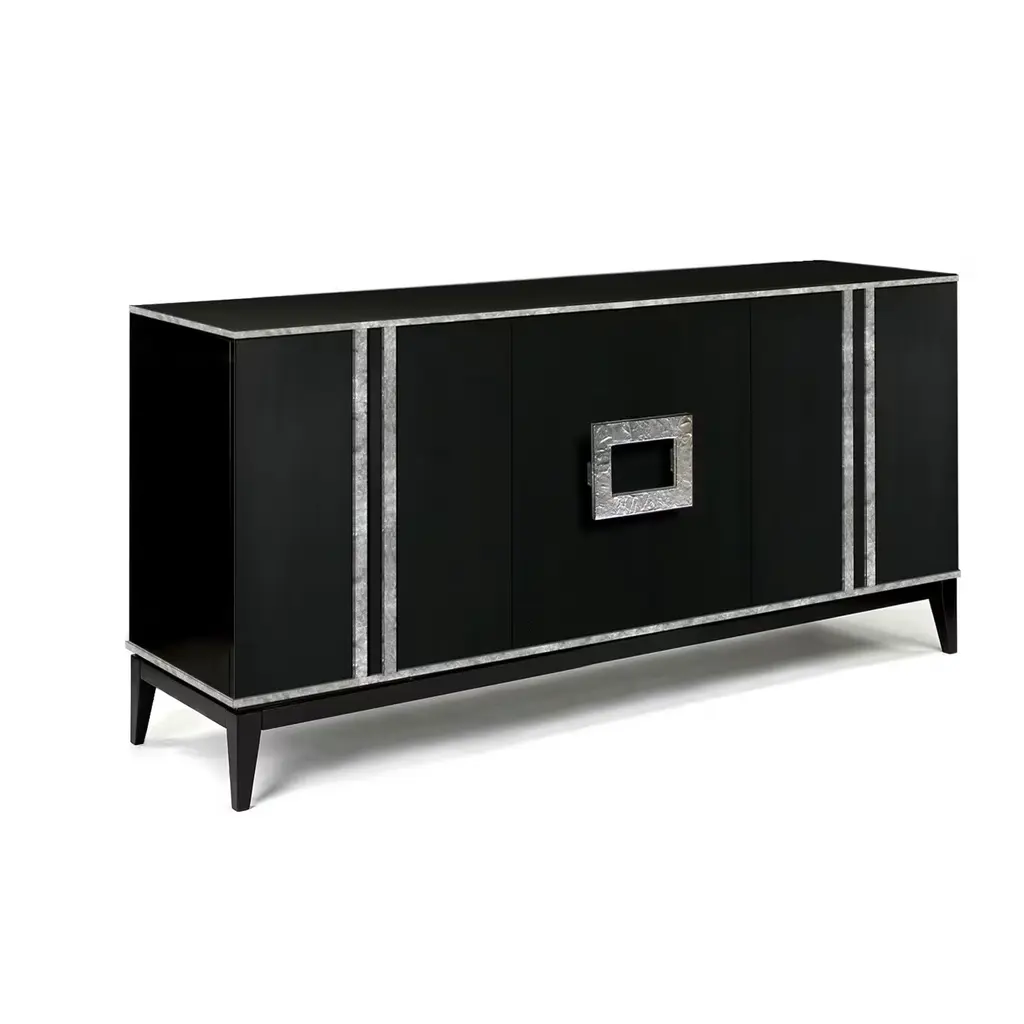 This three-door sideboard is beautifully crafted by the finest Italian artisans. The addition of a metal handle with the bright and intense effect of the hand-applied crinkled leaf offers a subtly glamorous appeal. Designer: Isabella Costantini. Please ask the Concierge for customization options.