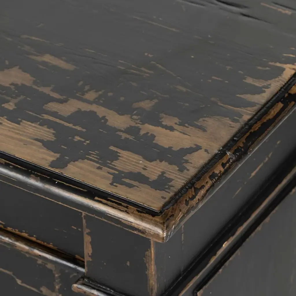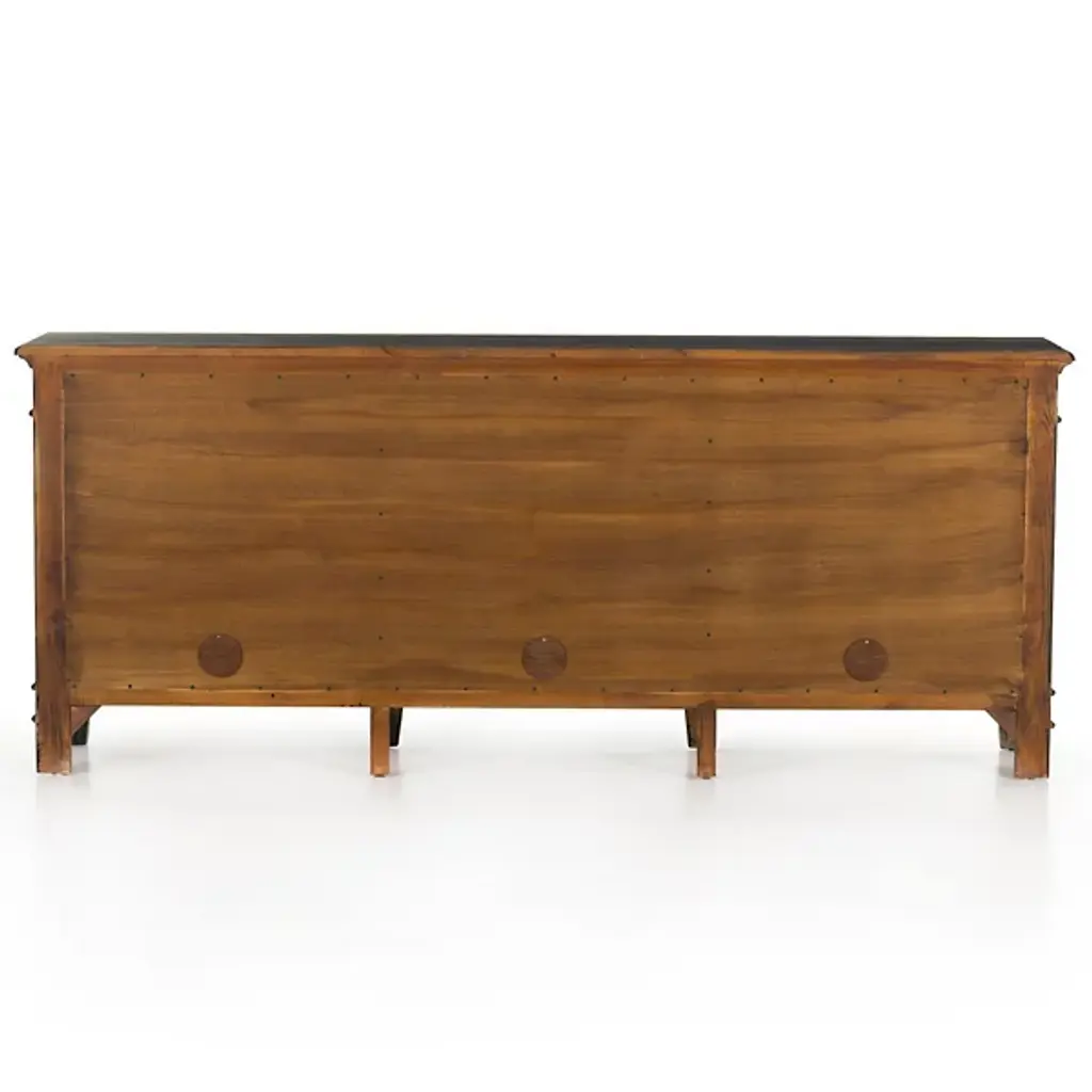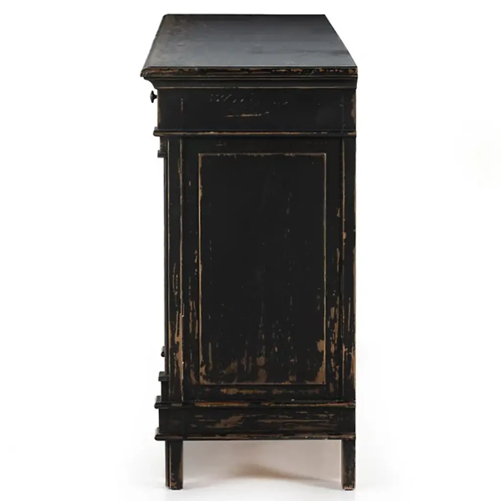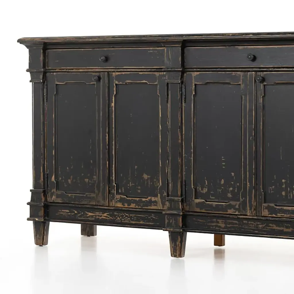 Inspired by European antiques, the Marjorie Sideboard from Four Hands features a distressed black finish with an authentic, heirloom-quality look. The piece's grand scale adds a touch of sophistication to any room while offering ample interior storage with three spacious top drawers. Perfect for organizing dining essentials or living room accessories, the sideboard also includes rear cutouts for seamless cord management, blending old-world charm with modern functionality for a truly timeless addition to your home.