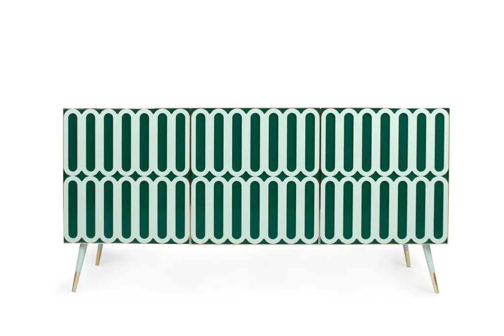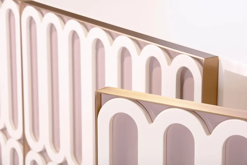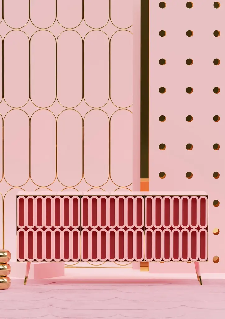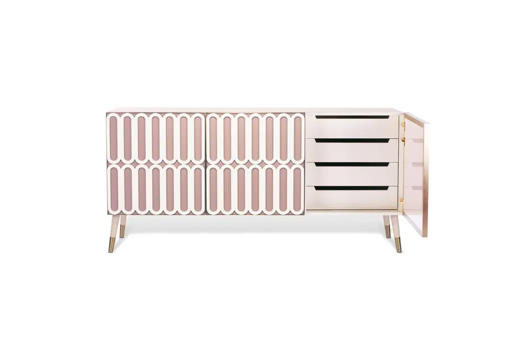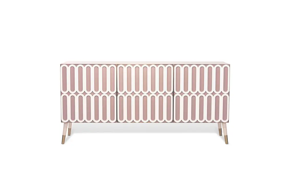 Marshmallow sideboard by Royal StrangerDimensions: 188 x 49 x 91 cmMaterials: A matte body and a matte pattern over a glossy surface, elevated by a brass presence.The Marshmallow sideboard is inspired by the glorious Art Deco decade, the Roaring Twenties. With a life of its own, this piece transmits glamour and contagious joy.Royal Stranger is an exclusive furniture brand determined to bring you the best unique pieces of art and design.Fusing design, art and the best craftsmanship, they strive to deliver the best state of handmade art furniture. The design team works every day to create meaningful products that represent values such as passion, function, aesthetics, and know-how. Values that are meant to represent Royal Stranger’s DNA. This dedication is present at all stages of production and the combination of craftsmanship and innovative design contributes toour final purpose: to produce certified high-quality products, made with passion and expertise and using royal materials such as a gold leaf, rich woods and high-quality lacquers.It was in 2013, as architects, that Sofia Santos & Rui Santos started to push the boundaries of innovation in several retail design concepts for some of the best stores in Portugal. This will have always been present in their work, and that’s how the brand was born.