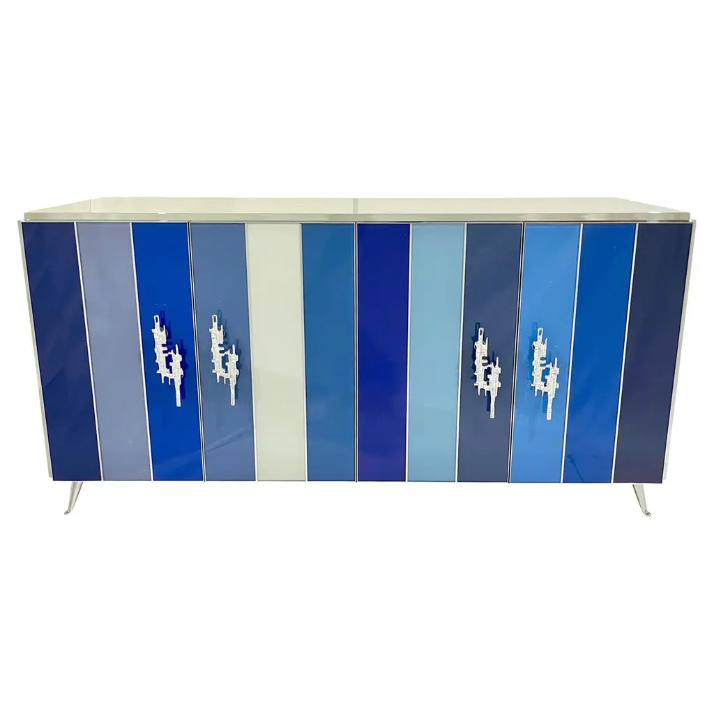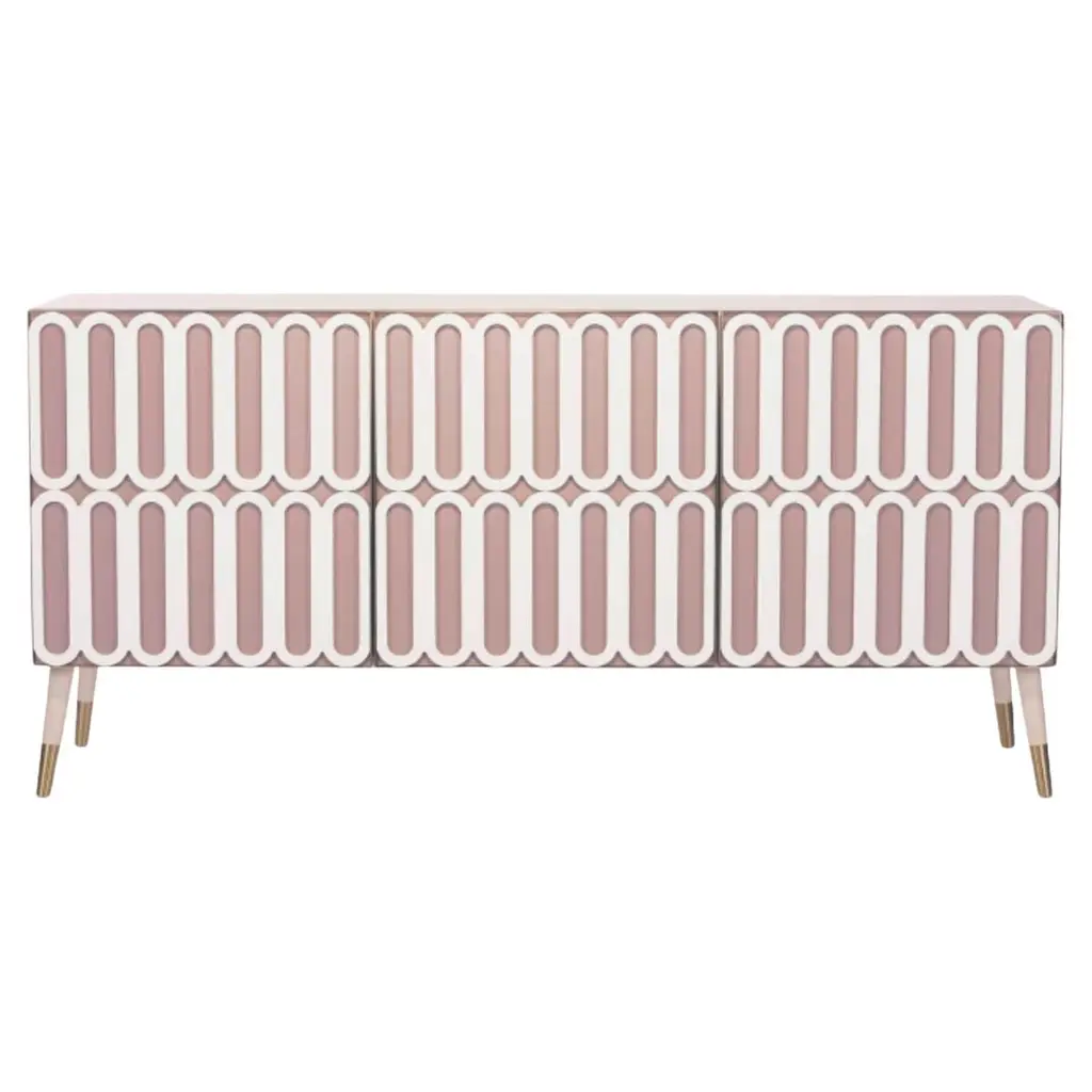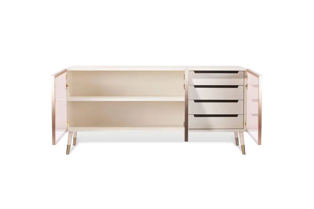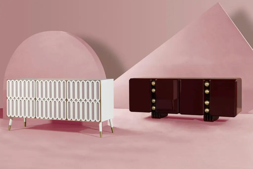Marshmallow sideboard by Royal StrangerDimensions: 188 x 49 x 91 cmMaterials: A matte body and a matte pattern over a glossy surface, elevated by a brass presence.The Marshmallow sideboard is inspired by the glorious Art Deco decade, the Roaring Twenties. With a life of its own, this piece transmits glamour and contagious joy.Royal Stranger is an exclusive furniture brand determined to bring you the best unique pieces of art and design.Fusing design, art and the best craftsmanship, they strive to deliver the best state of handmade art furniture. The design team works every day to create meaningful products that represent values such as passion, function, aesthetics, and know-how. Values that are meant to represent Royal Stranger’s DNA. This dedication is present at all stages of production and the combination of craftsmanship and innovative design contributes toour final purpose: to produce certified high-quality products, made with passion and expertise and using royal materials such as a gold leaf, rich woods and high-quality lacquers.It was in 2013, as architects, that Sofia Santos & Rui Santos started to push the boundaries of innovation in several retail design concepts for some of the best stores in Portugal. This will have always been present in their work, and that’s how the brand was born.