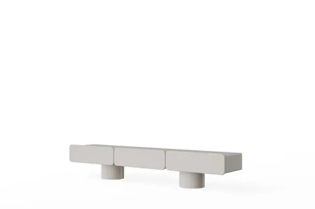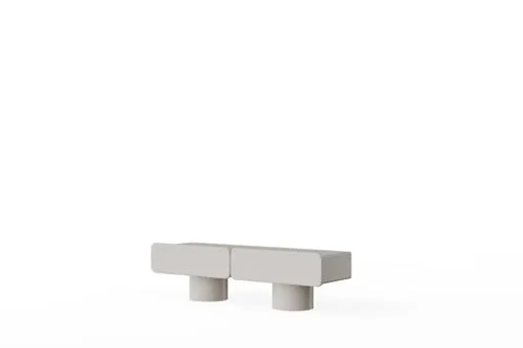 Marte2, Low Sideboard with Two Drawers with Cylinder Legs by Ultramobili Dimensions: W 180.3 x D 53 x H 52 cm Materials: Matte or Glossy Lacquer Finish. Low sideboard with 2 drawers and round legs. Rounded fronts and angles. Matte or glossy lacquer finish.