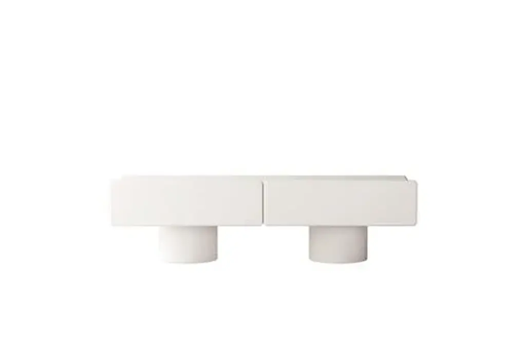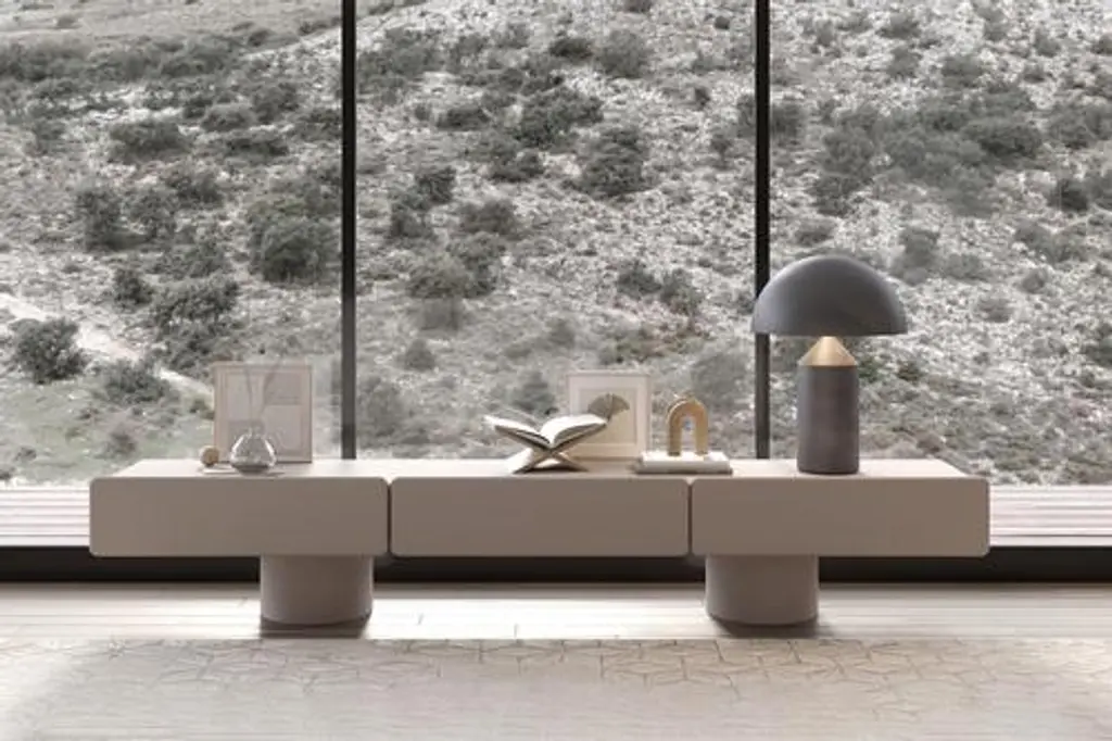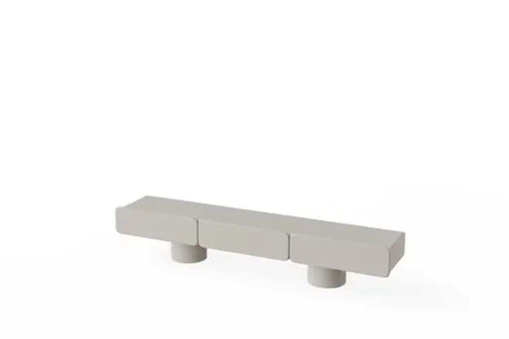 Marte3, Low Sideboard with Three Drawers with and Round Legs by Ultramobili Dimensions: W 270.6 x D 53 x H 50.5 cm Materials: Matte or Glossy Lacquer Finish. Low sideboard with 2 drawers and round legs. Rounded fronts and angles. Matte or glossy lacquer finish.
